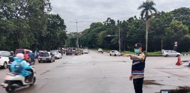 Personil Polsek Purwakarta Atur Lalu Lintas Pagi di Persimpangan ADB