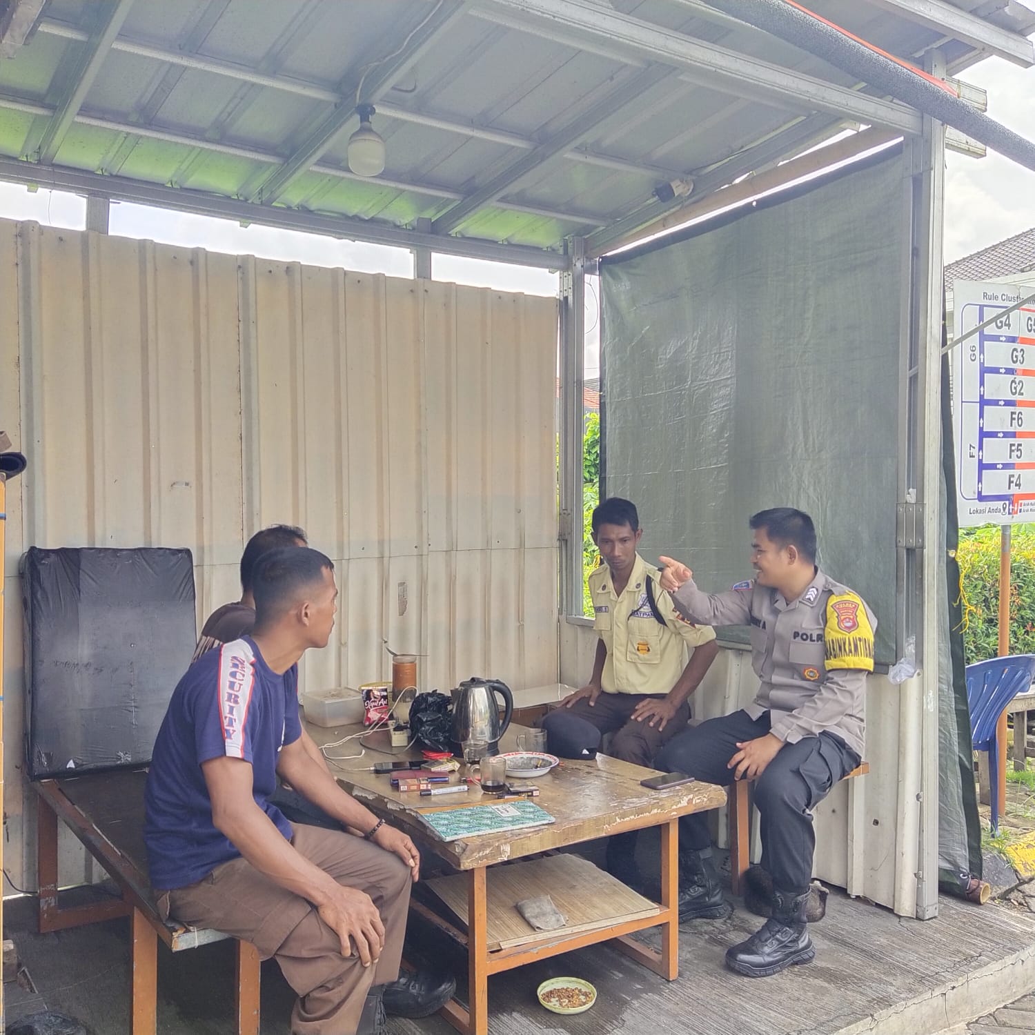 Personil Polsek Cilegon Polres Cilegon Berikan Himbauan Kepada Security jalin komunikasi kamtibmas.