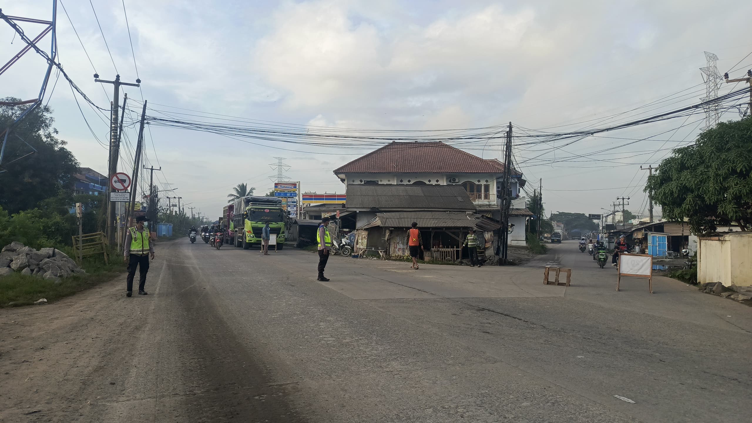 Bripka Leo & Brigadir Chaeruman Polsek Bojonegara Bantu Lancarkan Lalin Di Simpang Jalan Raya Wadas Bojonegara