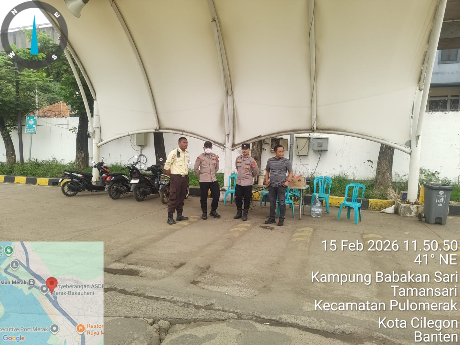 Cilegon - Personel Polsek Kskp Merak Polres Cilegon Polda Banten melaksanakan sambang dan patroli kawasan pelabuhan merak dalam rangka menjaga Harkamtibmas di Kawasan Pelabuhan Merak, Minggu (15/02/2026).