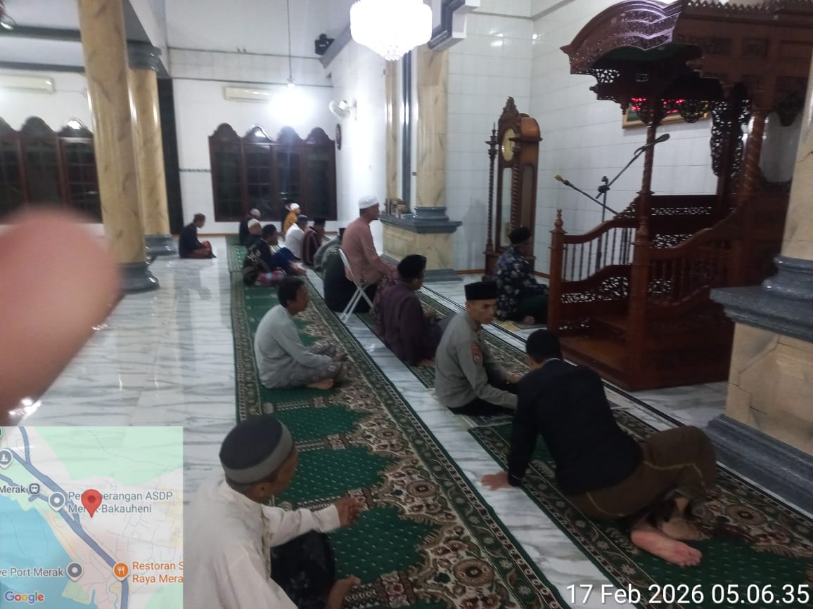 Cilegon – Personil Kskp Merak Polres Cilegon Polda Banten menggelar kegiatan Pembinaan Rohani dengan shalat subuh keliling di Masjid Yang ada Di Daerah hukum Polsek Kp Merak Polres Cilegon Polda Banten, Selasa (17/02/2026).