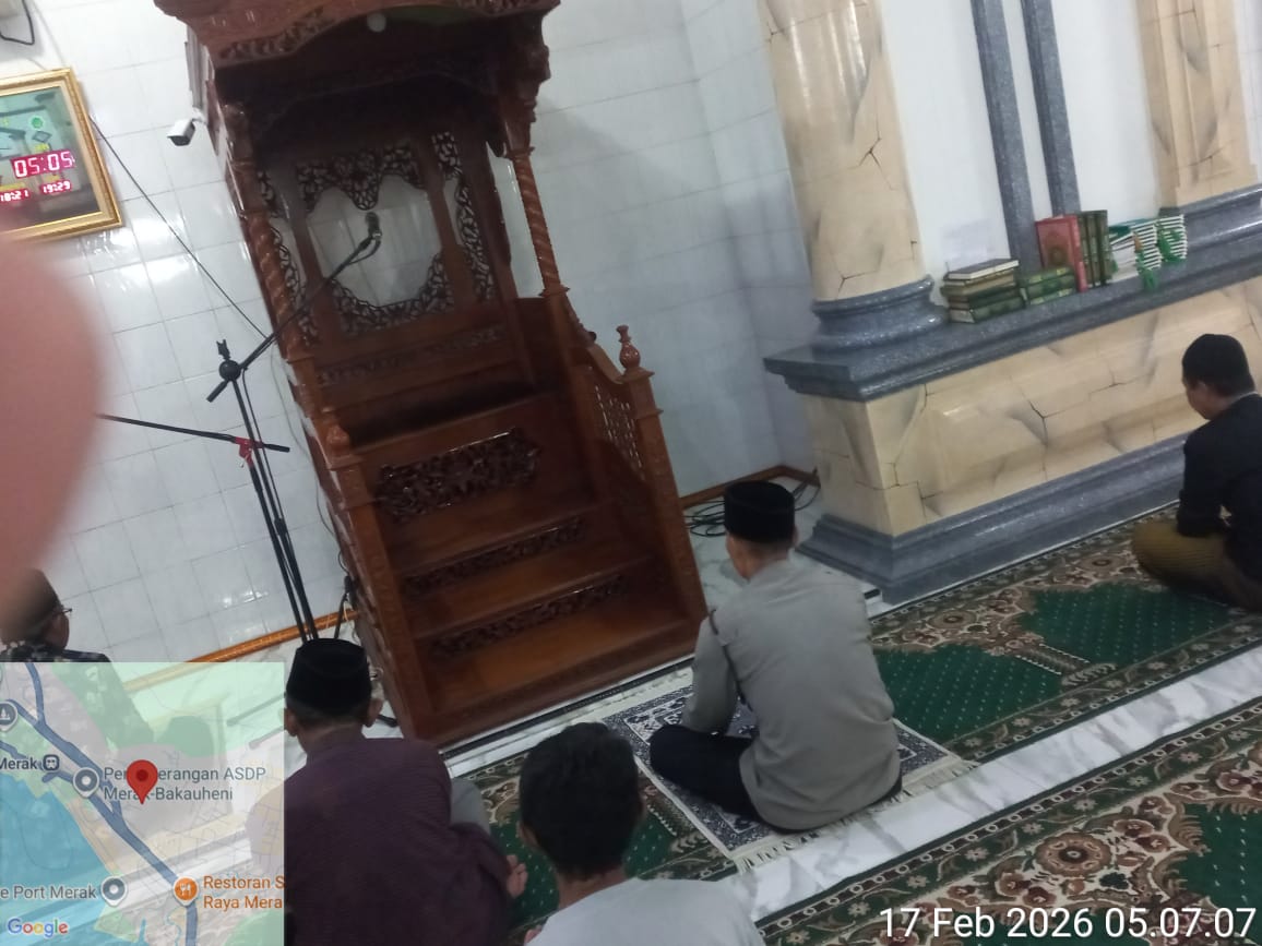 Cilegon – Personil Kskp Merak Polres Cilegon Polda Banten menggelar kegiatan Pembinaan Rohani dengan shalat subuh keliling di Masjid Yang ada Di Daerah hukum Polsek Kp Merak Polres Cilegon Polda Banten, Selasa (17/02/2026).