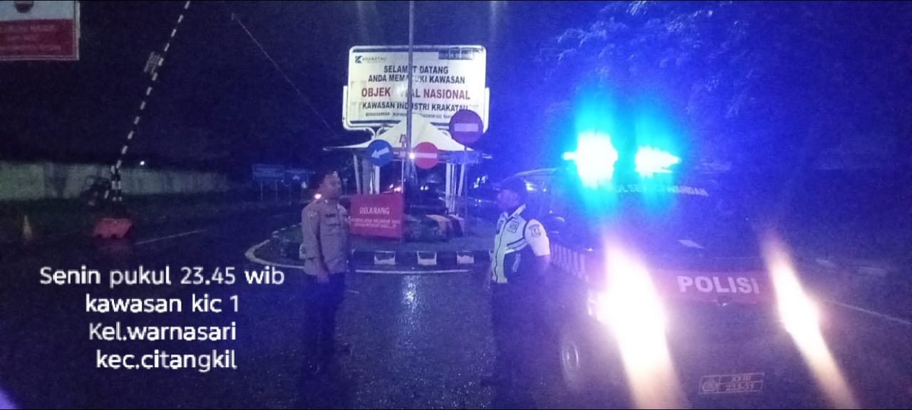 Patroli Malam, Upaya Personil Polsek Ciwandan Antisipasi Aksi Kejahatan Jalanan Bajing Loncat.