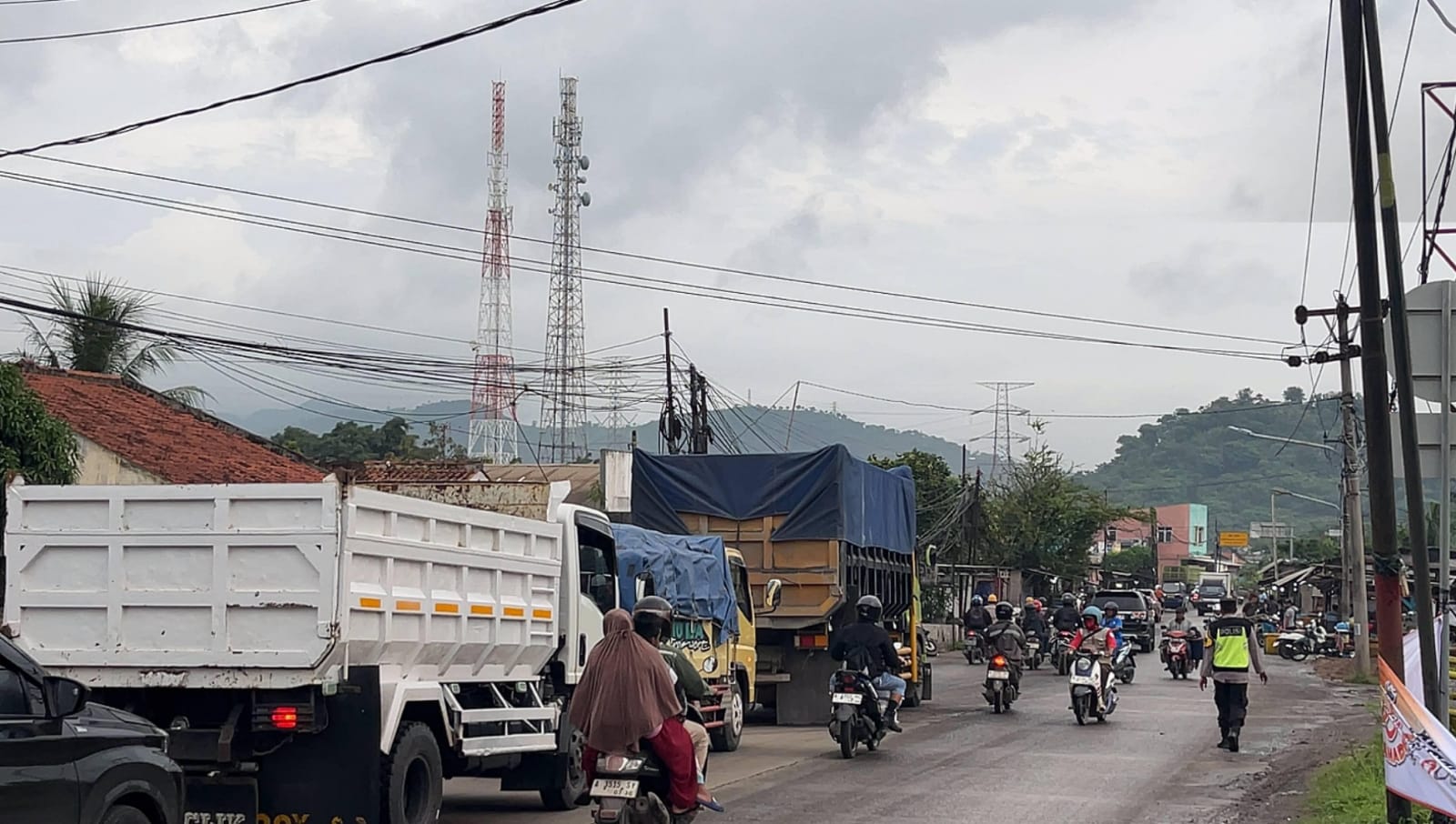 Aipda Susilo & Bripka Leo Bhabinkamtibmas Laksanakan Gatur Lalin Pagi hari Di Simpang Jalan Raya Wadas Bojonegara