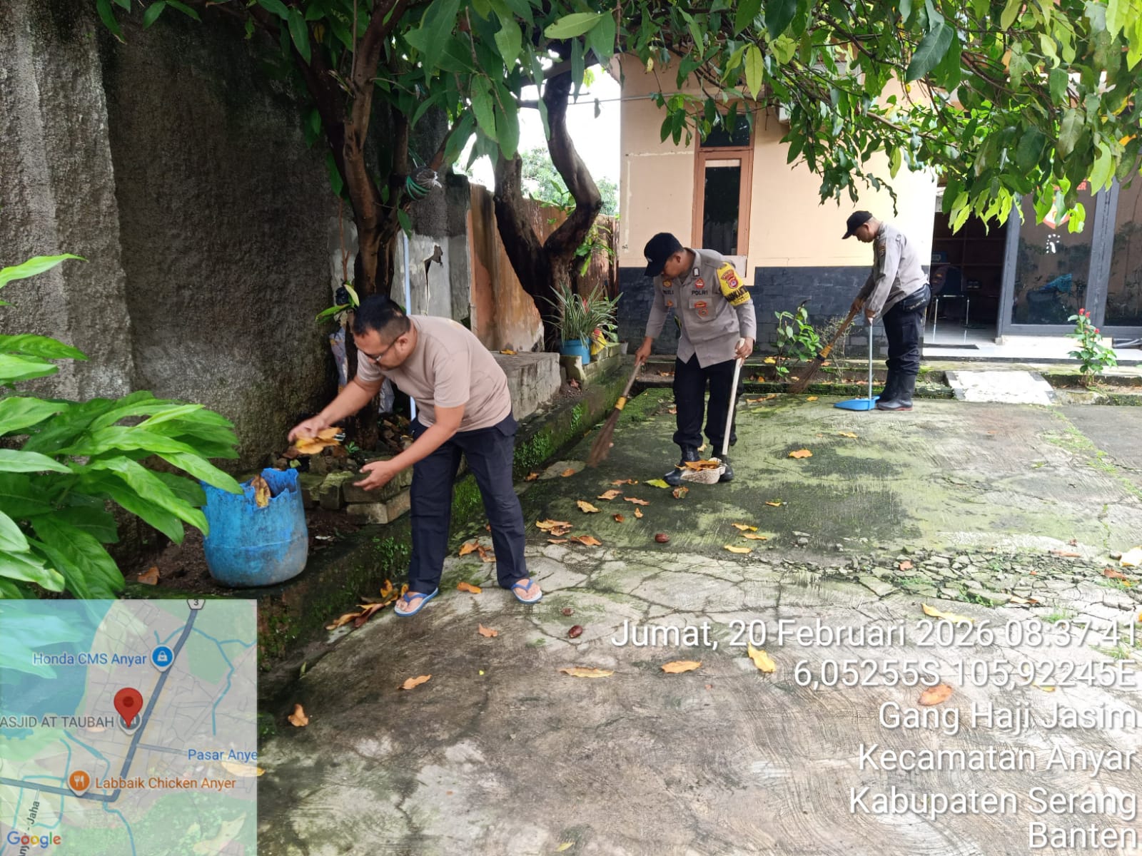 Anggota Polsek Anyar melaksanakan kegiatan Jumat Bersih di sekitar lingkungan Markas Komando (Mako) Polsek Anyar. Jumat (20/02/2026)