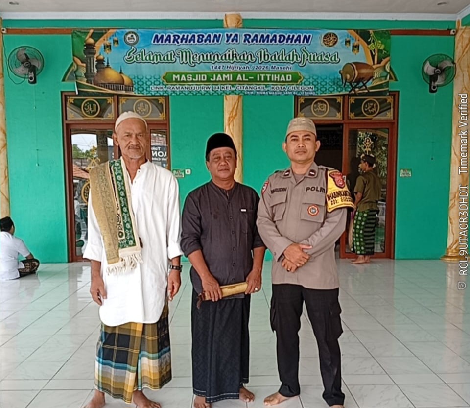 Cilegon - PJU Polres Cilegon, IPTU H.MUNIF beserta Personil Polsek Ciwandan melaksanakan kegiatan Jumling (Jum'at keliling) di Masjid Al Barokah, Link.Gunung Asem RT 08 RW 04 Kelurahan Lebak Denok Kecamatan Citangkil Kota Cilegon. Kegiatan ini bertujuan untuk menjalin silaturahmi dan komunikasi yang baik dengan masyarakat sekaligus menyampaikan pesan-pesan kamtibmas.