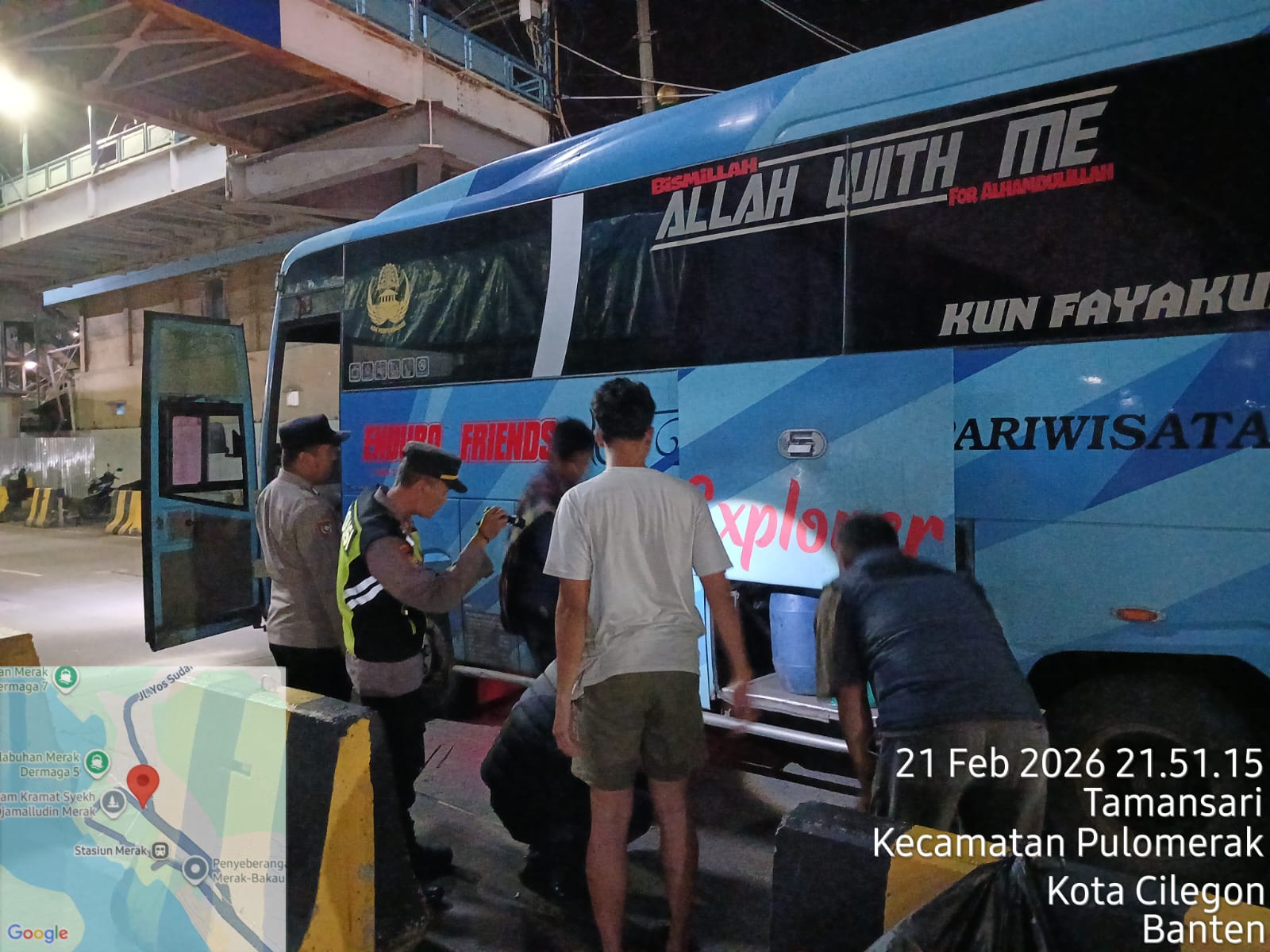 Cilegon - Personil Polsek Kskp Merak Polres Cilegon Polda Banten dengan di Pimpin oleh Kapolsek Kskp Merak AKP Gusti Almasri P melaksanakan kegiatan Razia di kawasan pelabuhan merak antisipasi tindak kriminal, Sabtu (21/02/2026).