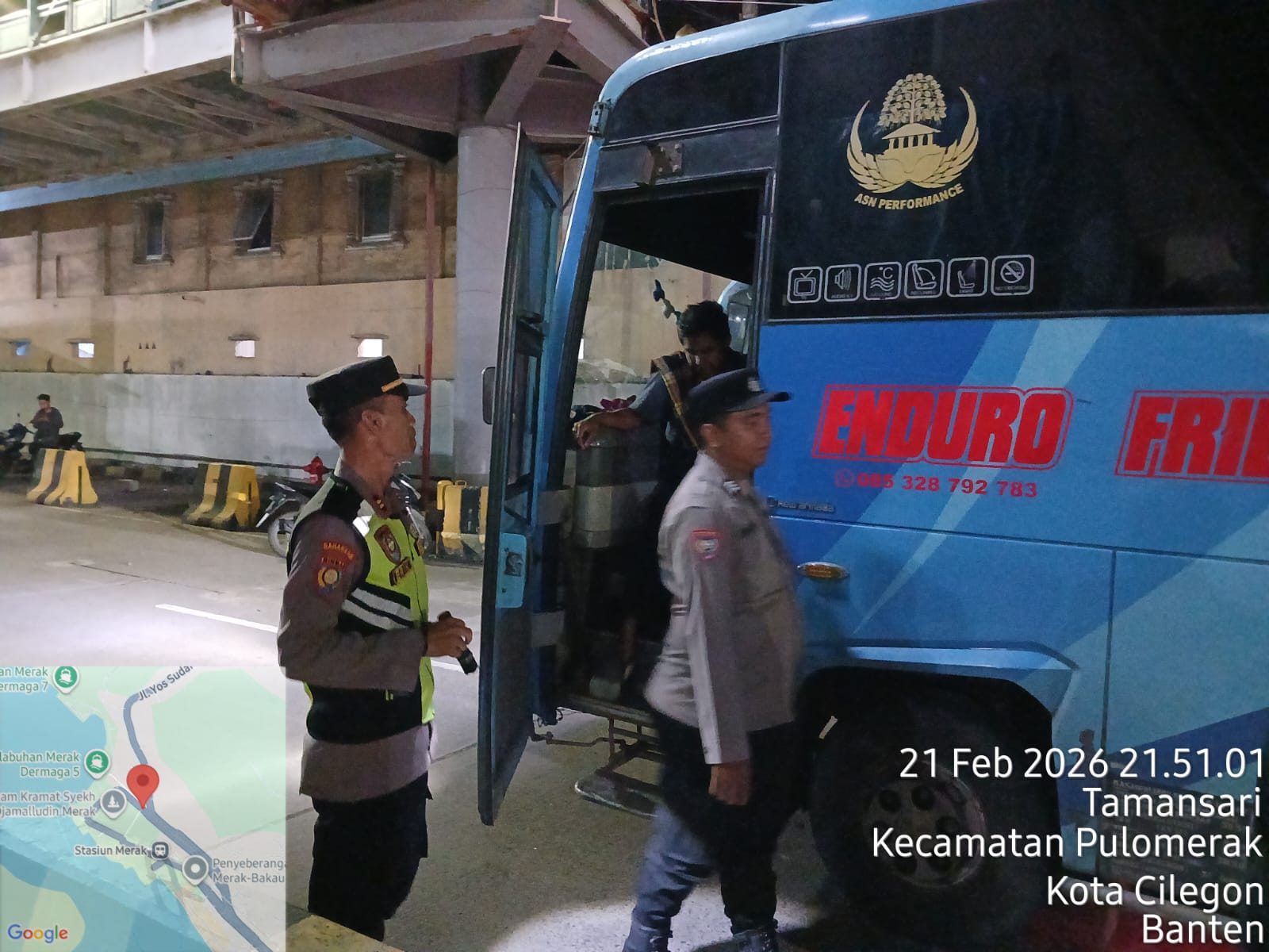 Cilegon - Personil Polsek Kskp Merak Polres Cilegon Polda Banten dengan di Pimpin oleh Kapolsek Kskp Merak AKP Gusti Almasri P melaksanakan kegiatan Razia di kawasan pelabuhan merak antisipasi tindak kriminal, Sabtu (21/02/2026).