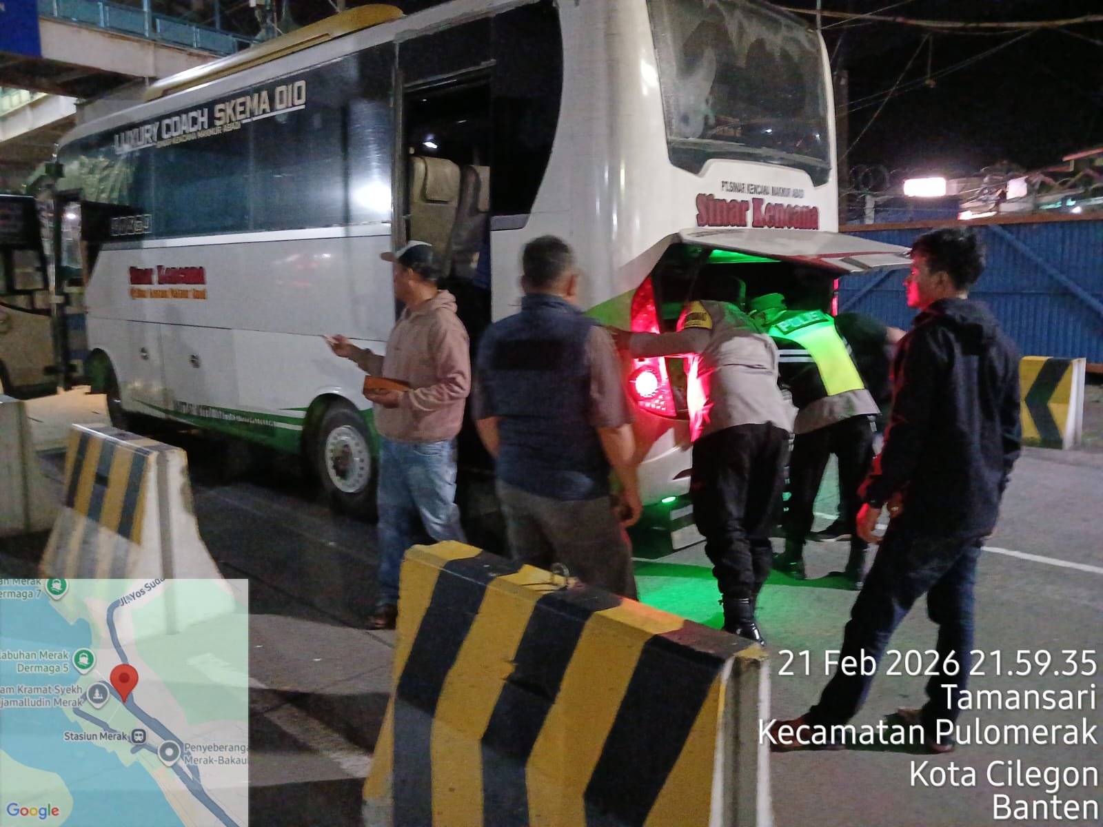 Cilegon - Personil Polsek Kskp Merak Polres Cilegon Polda Banten dengan di Pimpin oleh Kapolsek Kskp Merak AKP Gusti Almasri P melaksanakan kegiatan Razia di kawasan pelabuhan merak antisipasi tindak kriminal, Sabtu (21/02/2026).