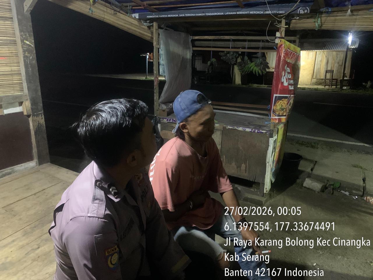 *Cilegon* – Dalam Rangka Pencegahan Kejahatan Jalanan dan Memelihara situasi keamanan dan menjaga serta memberikan rasa aman dan nyaman di masyarakat,Salah satu upaya untuk mewujudkan hal tersebut sebagaimana yang dilakukan oleh Personil Polsek Cinangka Polres Cilegon Polda Banten melaksanakan giat patroli blue light malam hari hingga menjelang pagi, Jumat (27/02/2026).