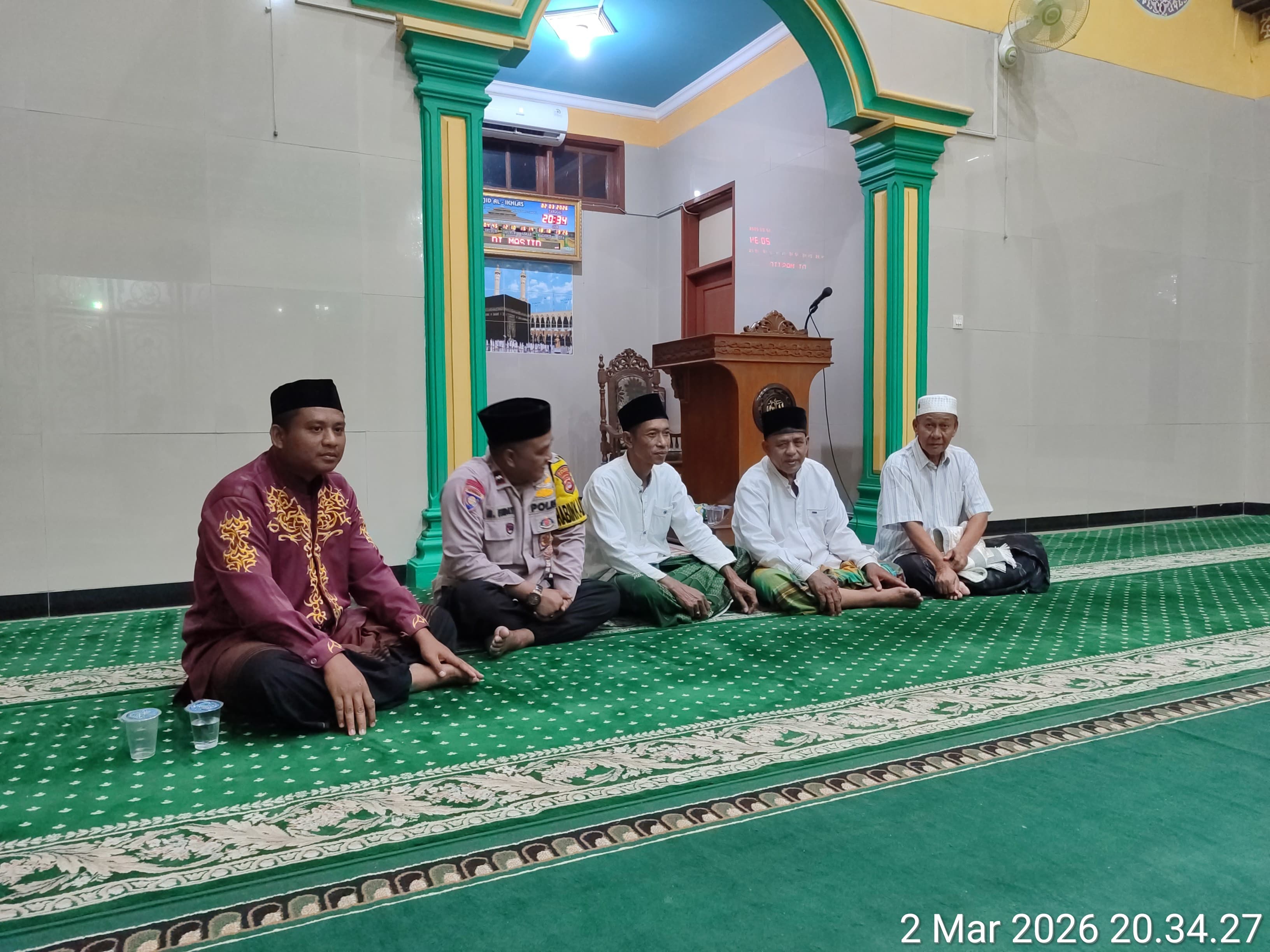 Cilegon - Bhabinkamtibmas Polsek Ciwandan Polres Cilegon Polda Banten melaksanakan kegiatan Sholat Tarawih Keliling (Tarling) di Mesjid Daerah Binaannya, Senin (02/03/2026).