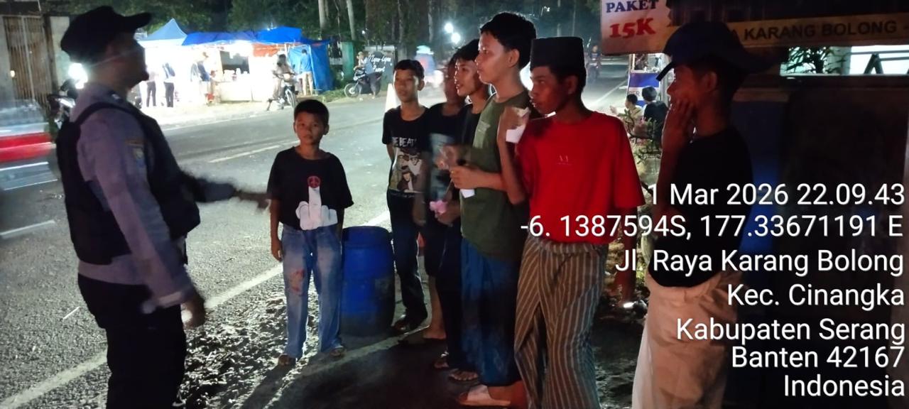 *Cilegon* – Dalam Rangka Pencegahan Kejahatan Jalanan dan Memelihara situasi keamanan dan menjaga serta memberikan rasa aman dan nyaman di masyarakat,Salah satu upaya untuk mewujudkan hal tersebut sebagaimana yang dilakukan oleh Personil Polsek Cinangka Polres Cilegon Polda Banten melaksanakan giat patroli blue light malam hari hingga menjelang pagi, Senin (02/03/2026).