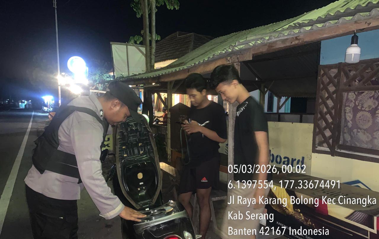 *Cilegon* – Dalam Rangka Pencegahan Kejahatan Jalanan dan Memelihara situasi keamanan dan menjaga serta memberikan rasa aman dan nyaman di masyarakat,Salah satu upaya untuk mewujudkan hal tersebut sebagaimana yang dilakukan oleh Personil Polsek Cinangka Polres Cilegon Polda Banten melaksanakan giat patroli blue light malam hari hingga menjelang pagi, Kamis (05/03/2026).