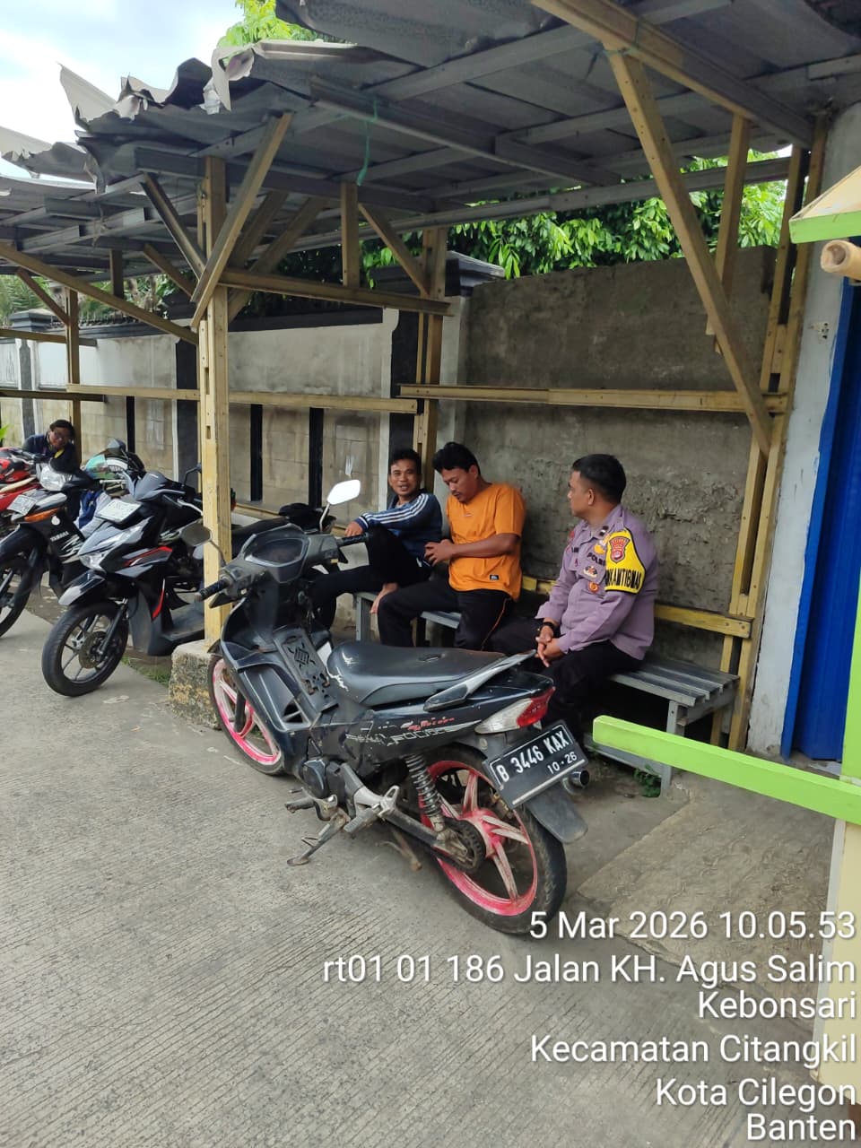 Cilegon - Guna mencegah gangguan kamtibmas, Personil Polsek Ciwandan Polres Cilegon Polda Banten melaksanakan giat Patroli dialogis dipangkalan Ojek (Opang) Pertigaan Simpang Warnasari Kelurahan Kebonsari kecamatan Citangkil, Kamis (05/03/2026).