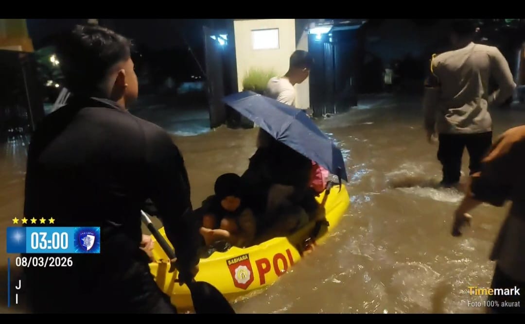 Terdampak Hujan Deras di Perumahan Metro Cilegon : Polres Cilegon Beraksi Evakuasi Warga