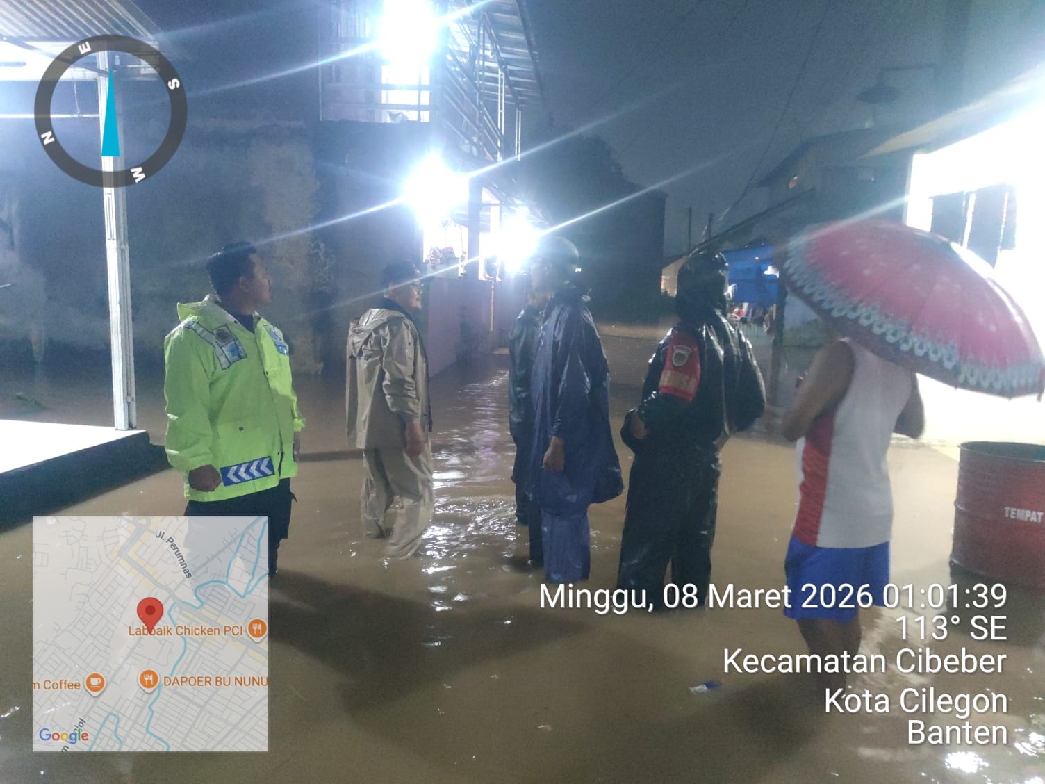 Camat Cibeber dan dibantu dengan warga sekitar melakukan patroli genangan air