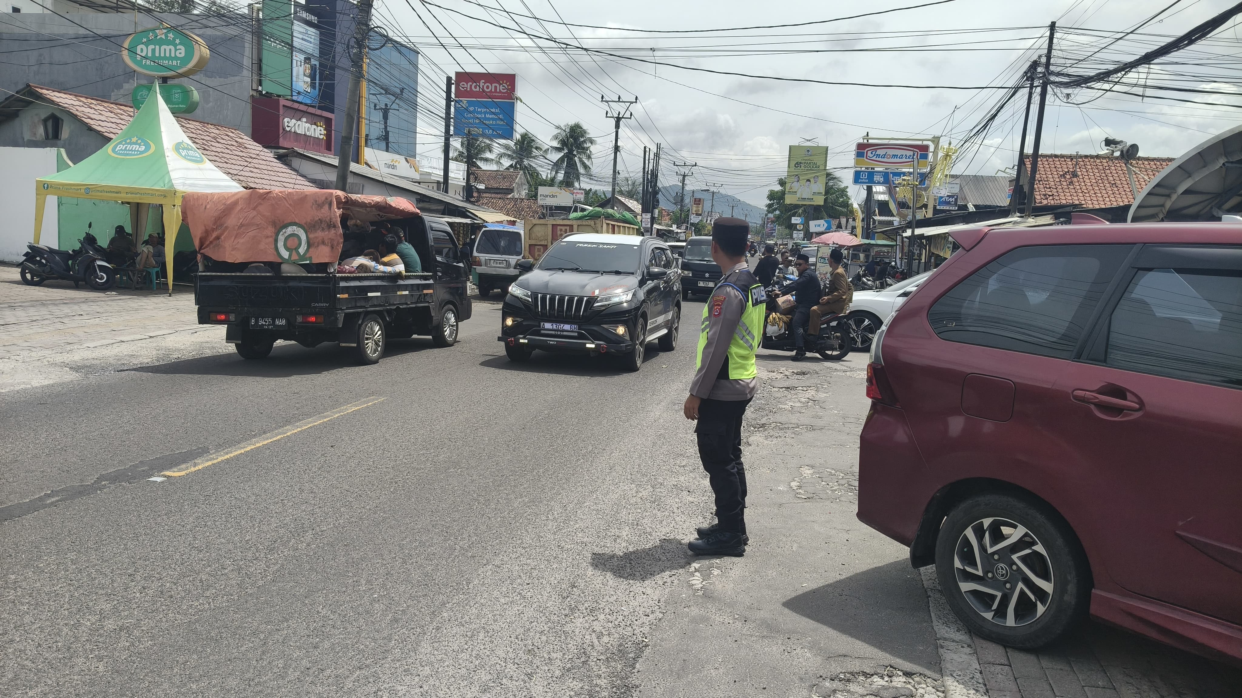Selain melakukan pengaturan arus kendaraan, personel juga memberikan imbauan kepada pengendara agar selalu mematuhi peraturan lalu lintas, mengutamakan keselamatan saat berkendara, serta menjaga ketertiban di jalan raya.