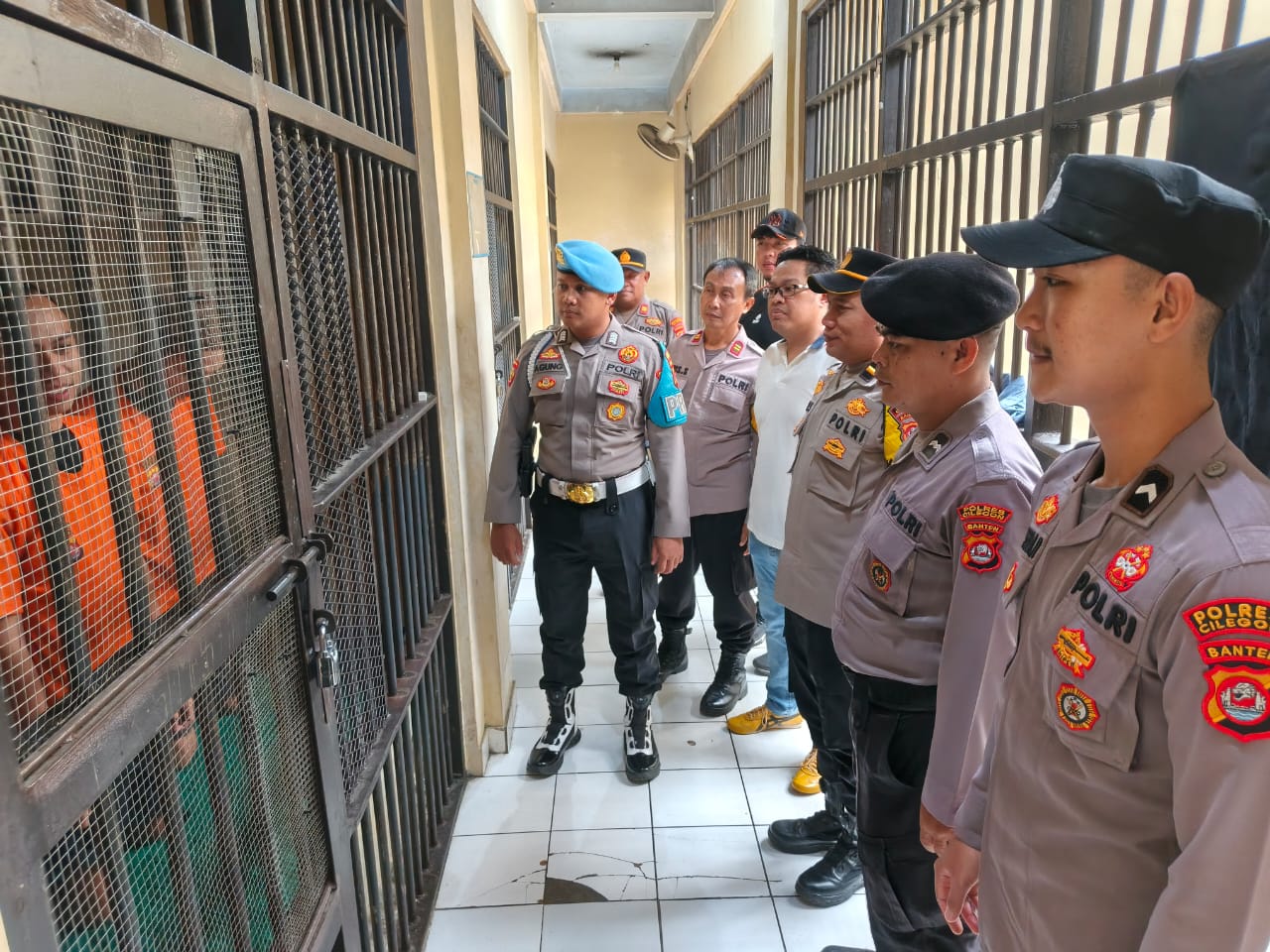 Piket Propam melakukan pengawasan pengecekan tahanan yang dilakukan bersama piket Tahti, piket satfung dan Propam mengecek Ruang Tahanan di Rutan Polres Cilegon .