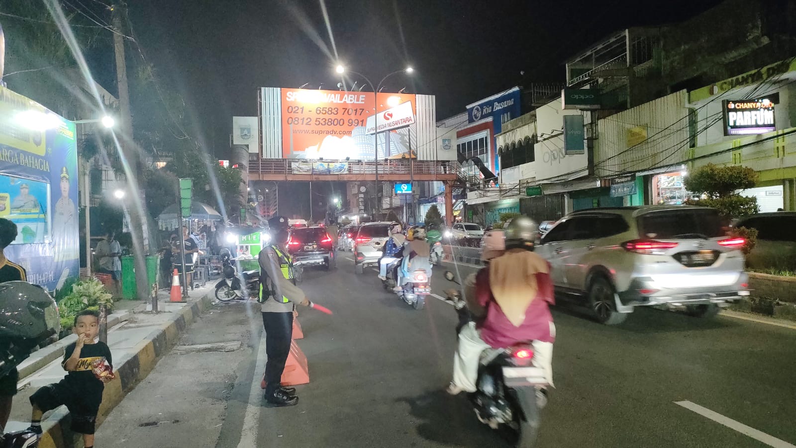 Personel Pos Pengamanan (Pospam) 3 Landmark Polsek Purwakarta dan anggota Polres Cilegon telah melaksanakan serangkaian kegiatan pengaturan lalu lintas dan pengamanan pada malam takbir