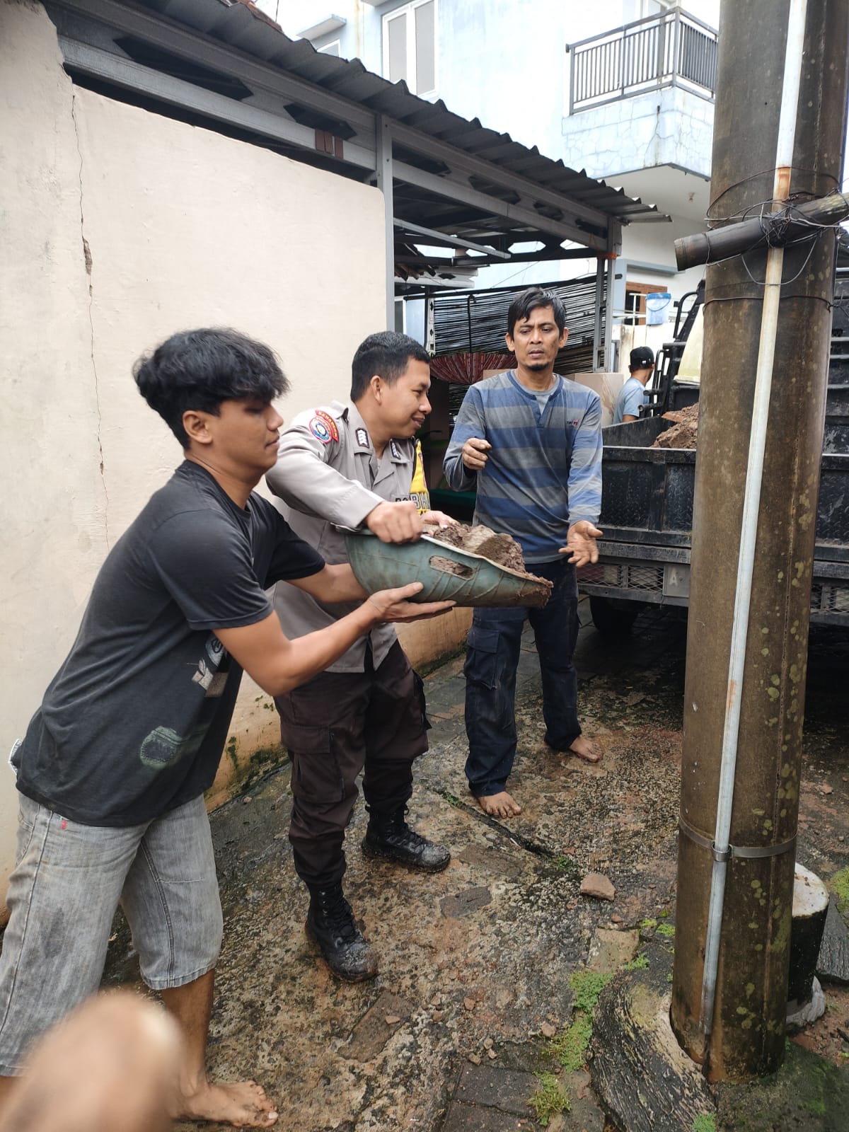 -Polres Cilegon, 25 Maret 2026 – Polda Banten Bhabinkamtibmas Bripka Agustoni dari Polsek Purwakarta turut serta aktif dalam kegiatan gotong royong bersama warga untuk membersihkan longsoran yang terjadi di pemukiman wilayah Kelurahan Kotabumi, Kecamatan Purwakarta, Kota Cilegon pada hari Rabu (25/03). Kejadian longsoran dipicu oleh kondisi cuaca yang tidak menentu, menyebabkan material tanah menutupi sebagian jalur akses warga.