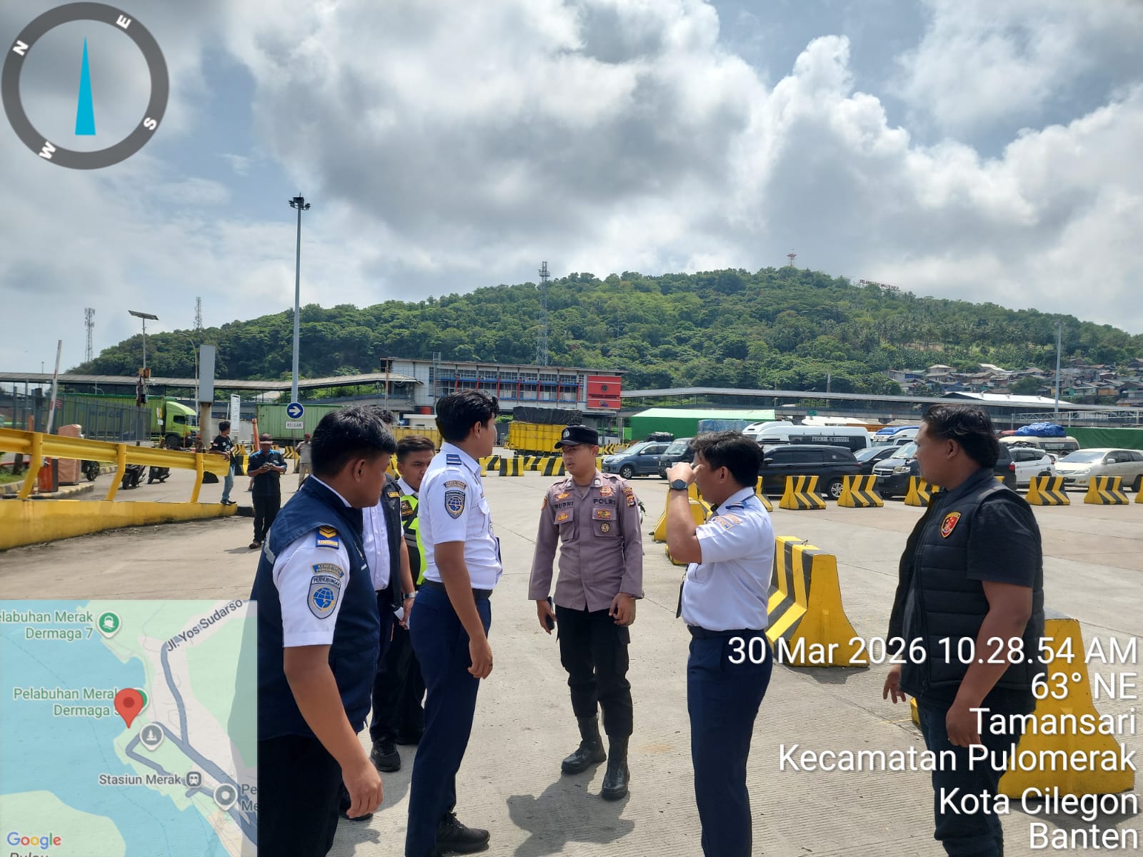 Cilegon - Personel Polsek Kskp Merak Polres Cilegon Polda Banten melaksanakan sambang dan patroli kawasan pelabuhan merak dalam rangka menjaga Harkamtibmas di Kawasan Pelabuhan Merak, Senin (30/03/2026).