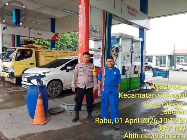 Cilegon - Kepolisian Polsek Ciwandan Polres Cilegon Polda Banten, melakukan pengecekan stok Bahan Bakar Minyak (BBM) di dua SPBU di wilayah Ciwandan, Cilegon, Rabu (01/04/2026).