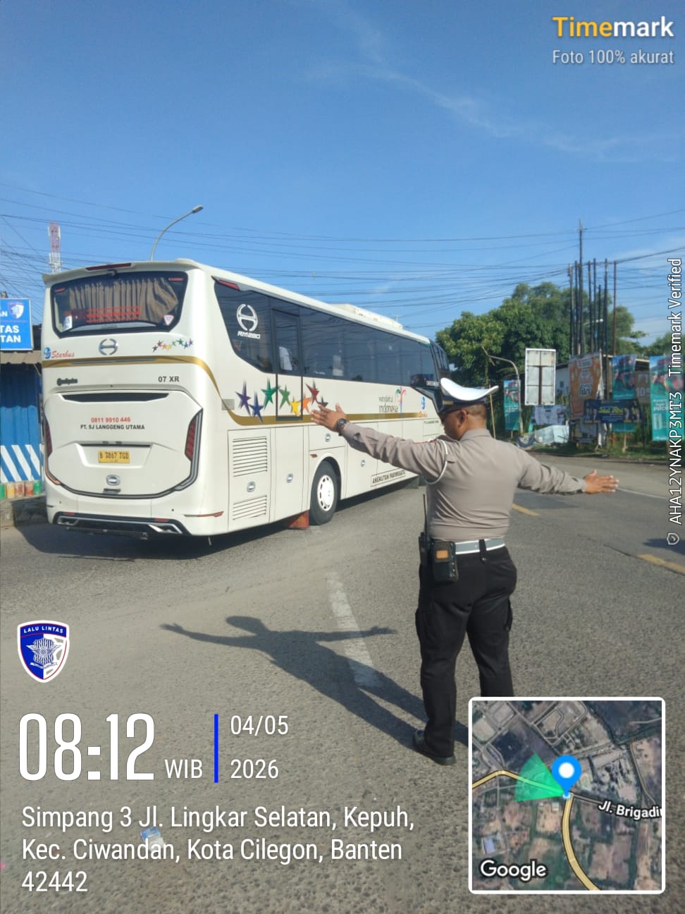 Cilegon - Weekend kali ini Personil Unit Lantas Polsek Ciwandan Polres Cilegon Polda Banten melaksanakan pengaturan lalu lintas di Simpang JLS tepatnya di Pertigaan depan PT. Semen Indonesia Demi Kelancaran Arus Lalu-lintas Wisata, Minggu (05/04/2026).