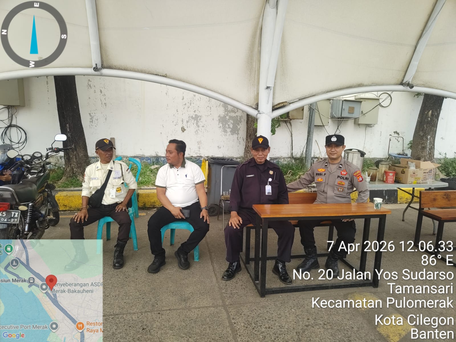 Cilegon - Personel Polsek Kskp Merak Polres Cilegon Polda Banten melaksanakan sambang dan patroli kawasan pelabuhan merak dalam rangka menjaga Harkamtibmas di Kawasan Pelabuhan Merak, Selasa (07/04/2026).