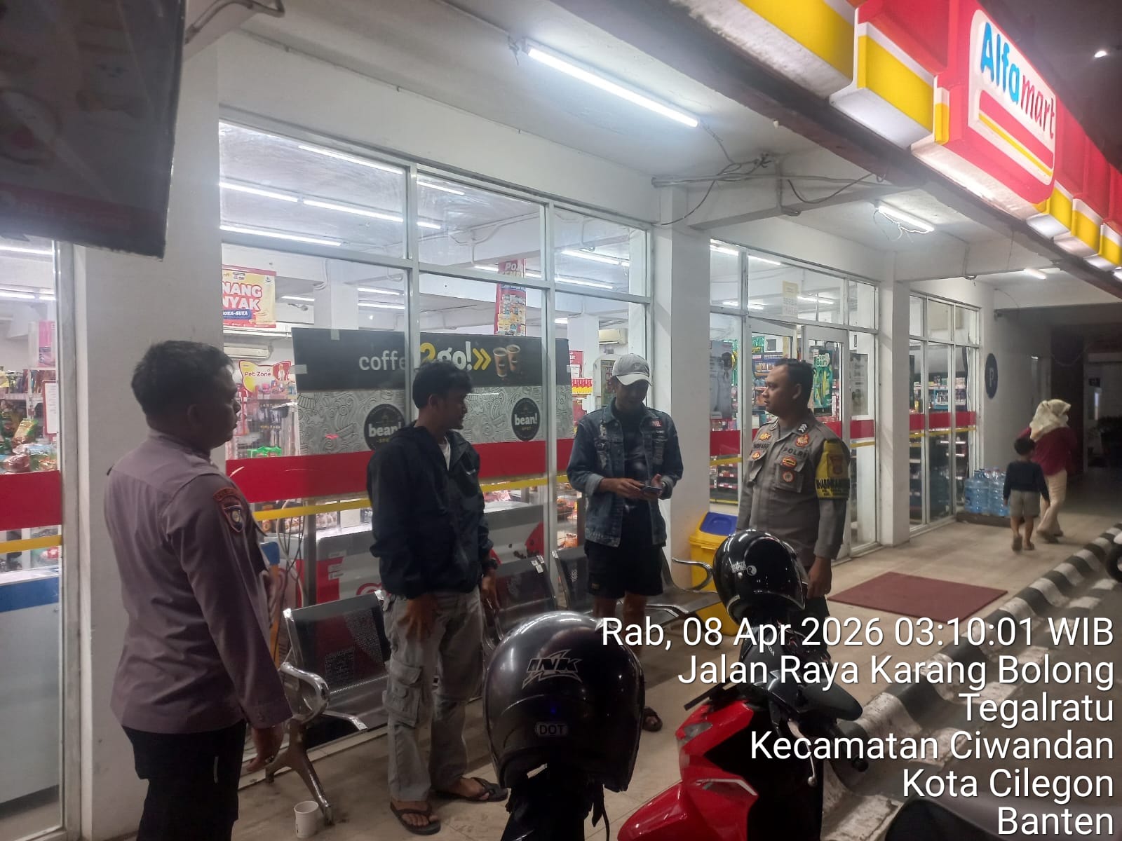 Cilegon - Patroli ini digelar oleh personil Polsek Ciwandan Polres Cilegon Polda Banten untuk Menekan Gangguan Kamtibmas dan mengantisipasi aksi kriminalitas Pada Jam-jam Rawan di pertokoan ataupun minimarket ,Di samping Patroli petugas juga melakukan himbauan dialogis baik dengan karyawan maupun para pengunjung, Rabu (08/04/2026).