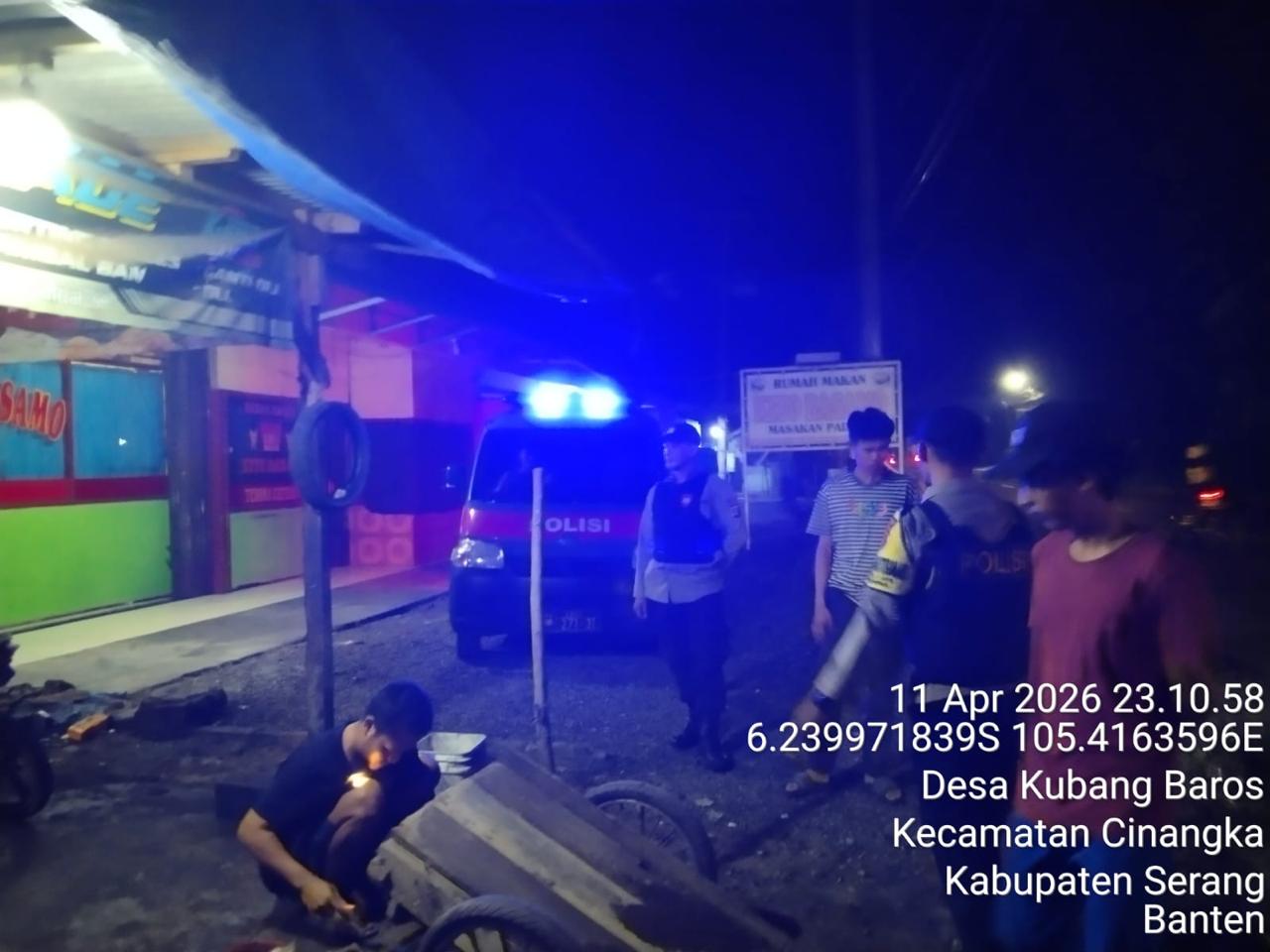 *Cilegon* – Dalam Rangka Pencegahan Street Crime dan Memelihara situasi keamanan dan ketertiban serta memberikan rasa aman dan nyaman di masyarakat,Salah satu upaya untuk mewujudkan hal tersebut sebagaimana yang dilakukan oleh Personil Polsek Cinangka Polres Cilegon Polda Banten melaksanakan giat patroli blue light malam hari hingga menjelang pagi, Minggu (12/04/2026).