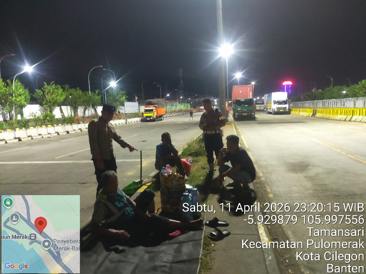 Cilegon - Personil Polsek Kskp Merak Polres Cilegon melaksanakan patroli di kawasan pelabuhan merak memberikan rasa aman dan damai, Minggu (12/04/2026)