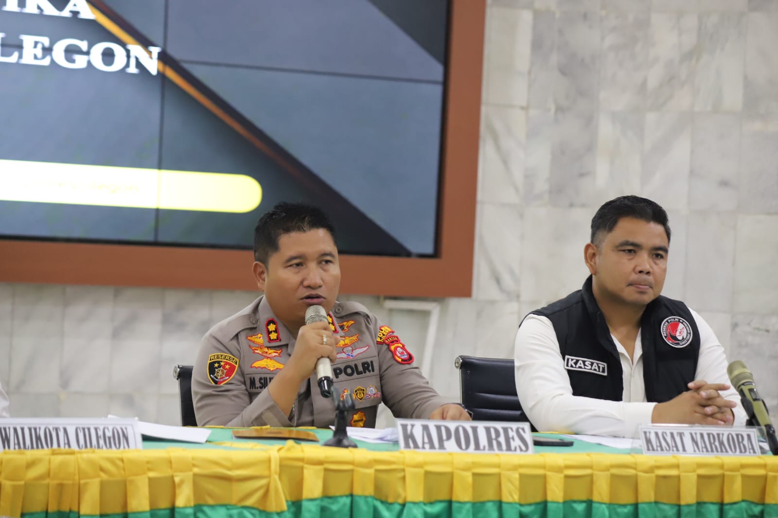 Kapolres Cilegon AKBP Dr. Martua Raja Taripar Laut Silitonga menyampaikan bahwa dari total tersangka, 9 orang berperan sebagai pengedar dan 3 orang sebagai perantara dalam transaksi narkotika.