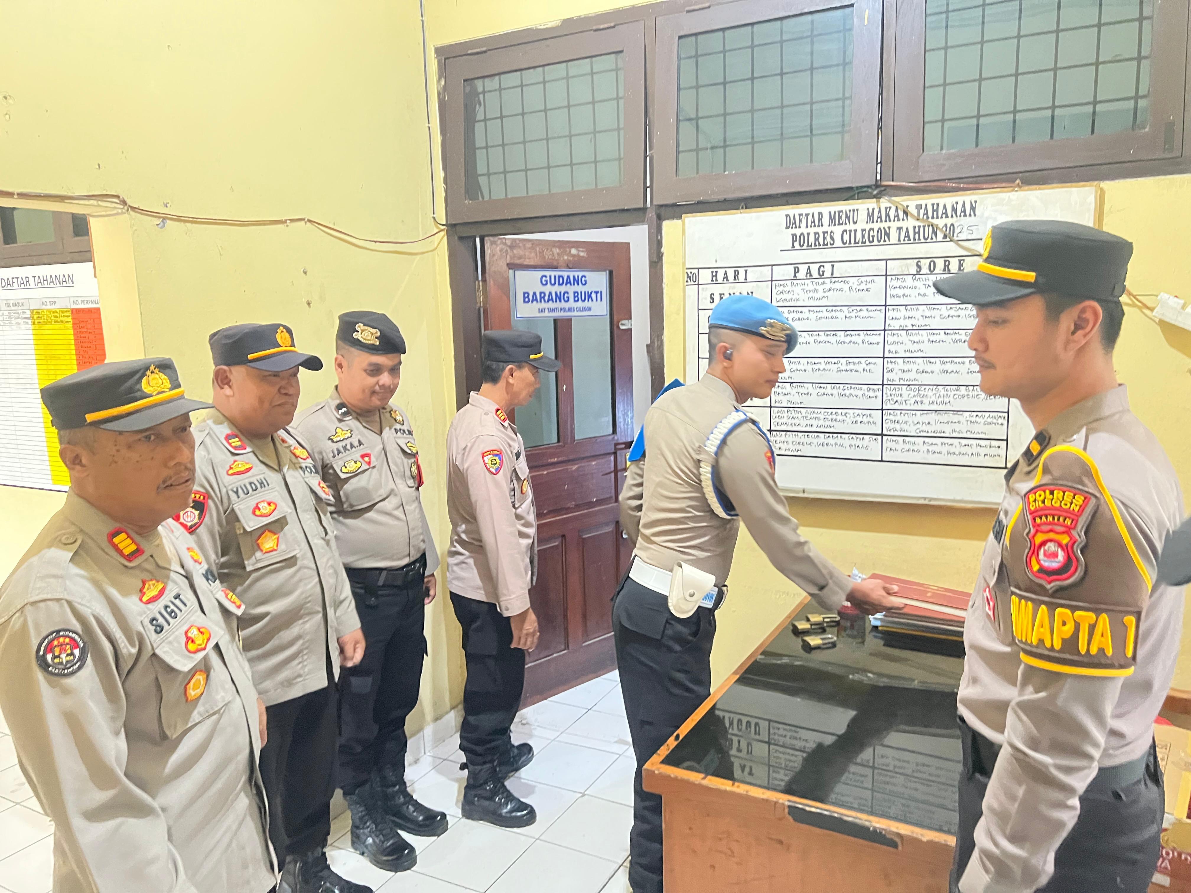 Cilegon,Polres Cilegon Polda Banten Pada Minggu/19/04/2026 Pukul  09.00 Wib, Perwira Pengawas (Pawas) dan Bintara Pengawas (Bawas)  Personil  Dari Siwas Polres Cilegon  melaksanakan pengecekan secara langsung ke Ruang Tahanan Polres Cilegon guna memastikan tahanan dalam keadaan aman, sehat dan lengkap,