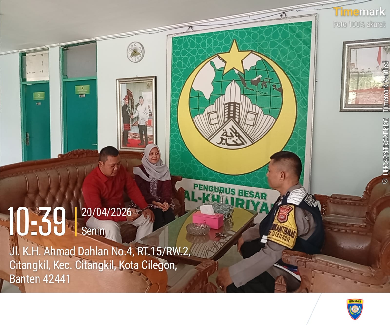 Cilegon - Bhabinkamtibmas Polsek Ciwandan Polres Cilegon Polda Banten melaksanakan kegiatan Patroli Dan sambang Dialogis secara Door to Door Sistem (DDS) serta Berikan Pesan-pesan Kamtibmas Guna Menciptakan situasi Harkamtibmas yang Aman dan nyaman, Senin (20/04/2026).