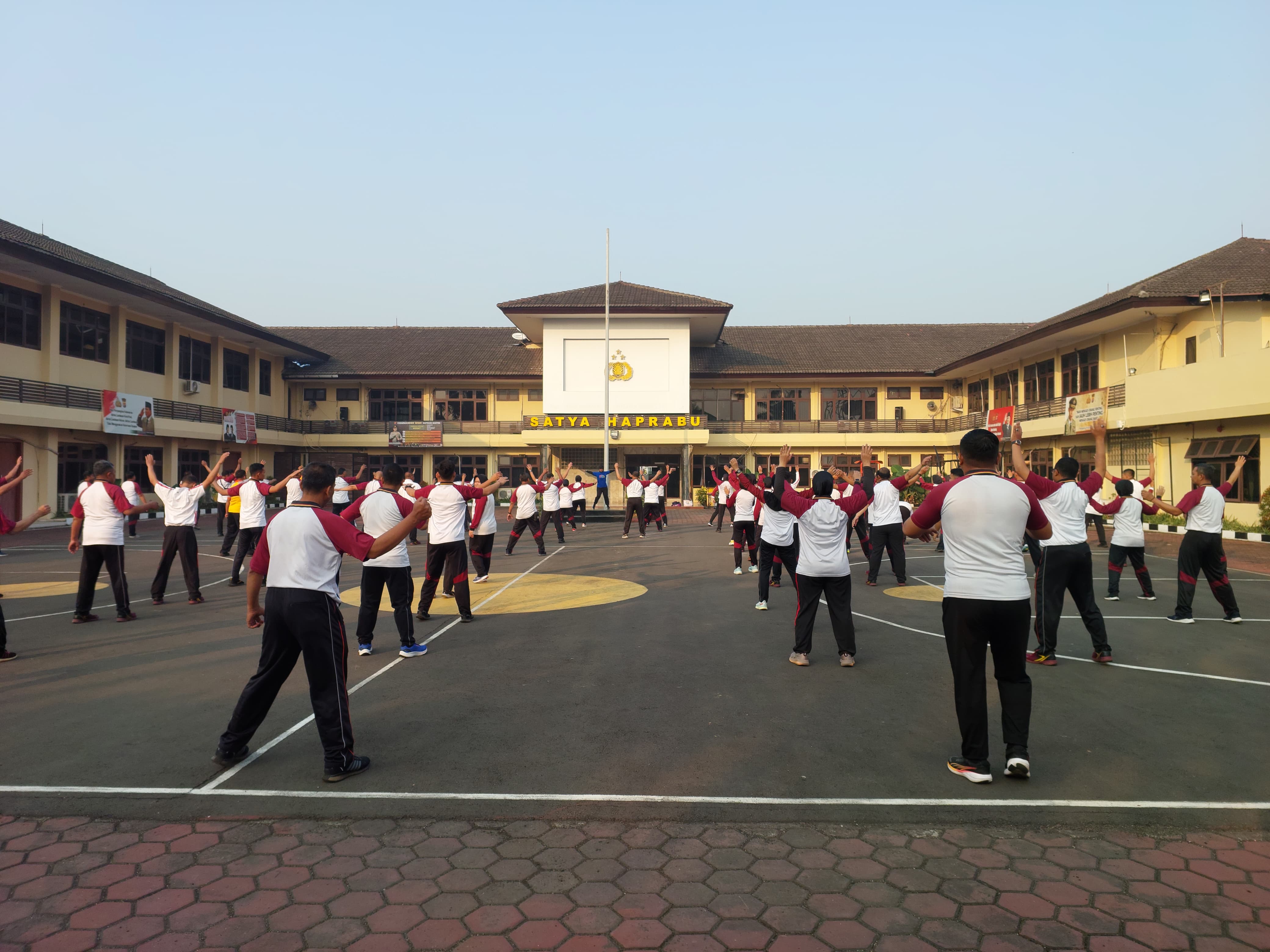 olahraga mandiri di lapangan Polres Cilegon dan melaksanakan senam aerobik di