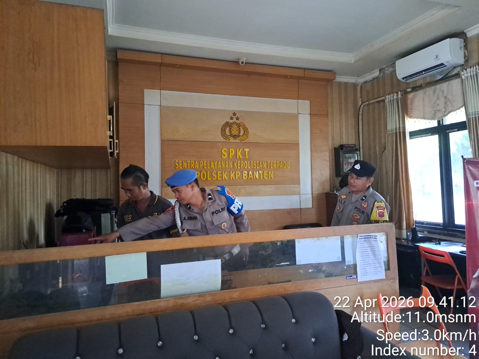 Cilegon.  Personel piket jaga Polsek Kskp Banten Polres Cilegon Polda Banten melaksanakan Pengamanan Mako Polsek, Rabu (22/04).