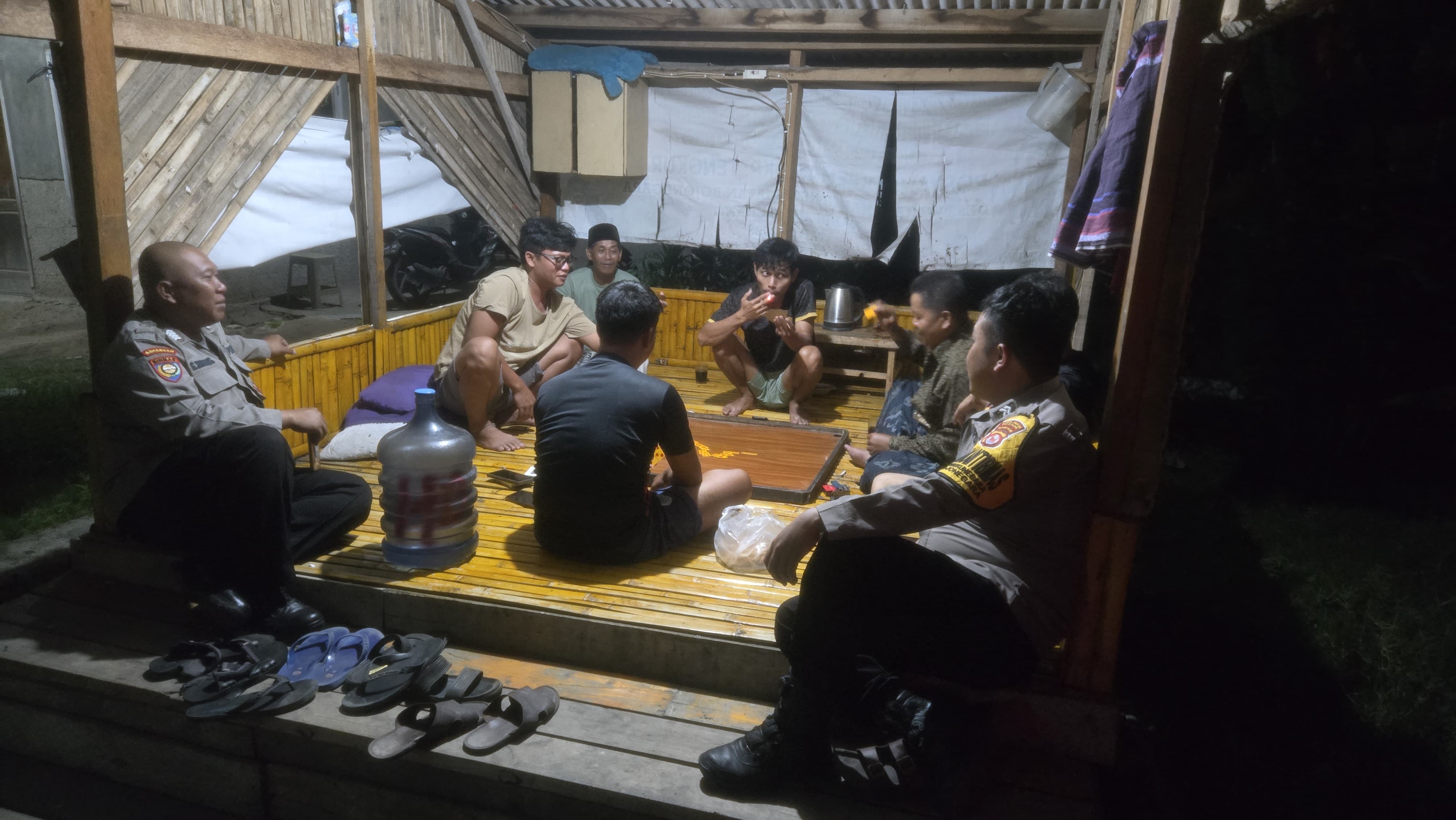 Saling Tukar Pendapat di Pos Ronda,Bripka Geri & Briptu Lutfi Bhabinkamtibmas Datangi Warga Ronda Malam & Sosialisasi Call Center 110