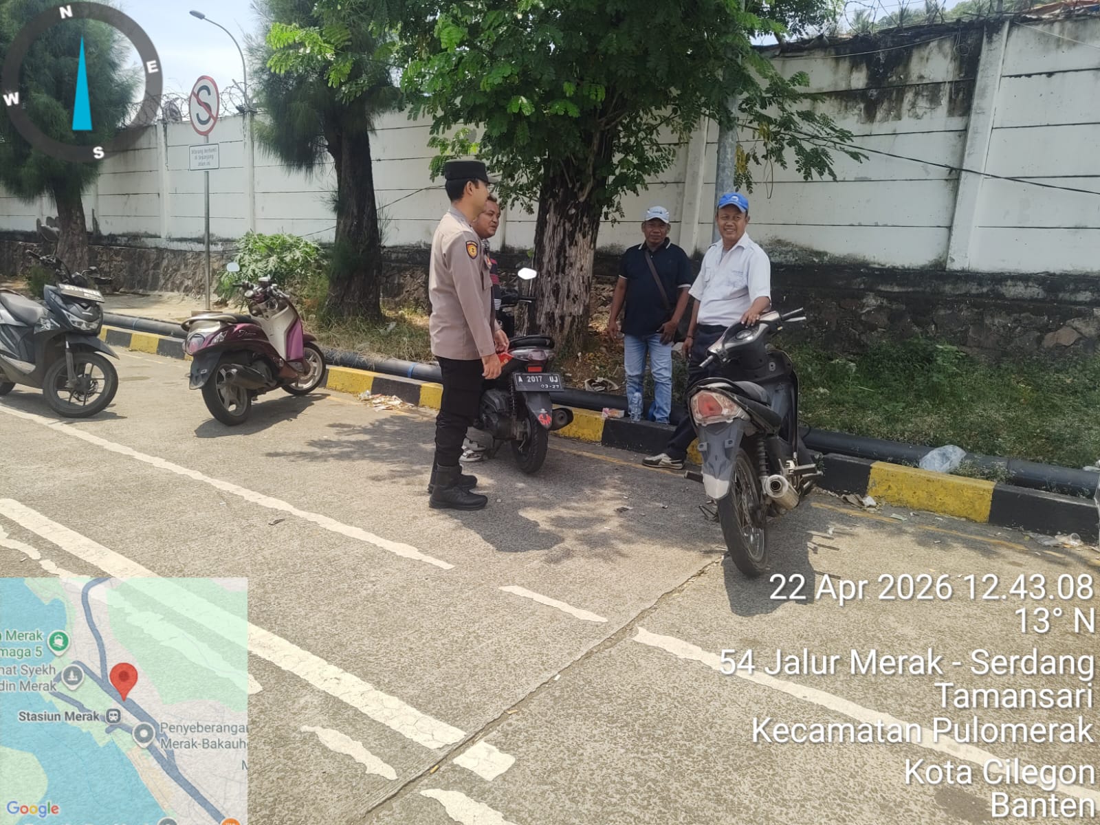 Cilegon - Personel Polsek Kskp Merak Polres Cilegon Polda Banten melaksanakan sambang dan patroli kawasan pelabuhan merak dalam rangka menjaga Harkamtibmas di Kawasan Pelabuhan Merak, Rabu (22/04/2026).