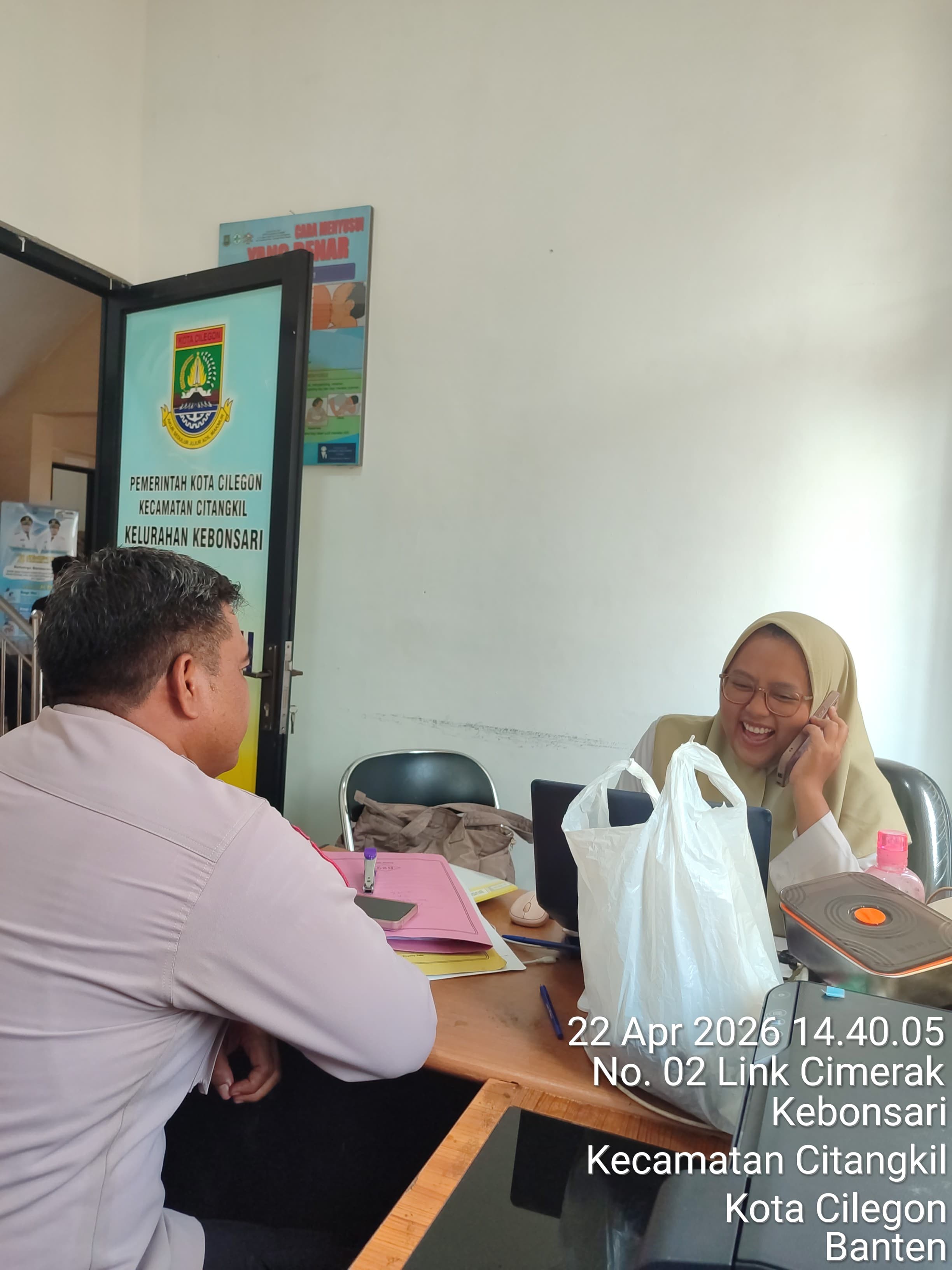 Cilegon –  Bhabinkamtibmas Polsek Ciwandan Polres Cilegon Polda Banten yaitu dengan menyambangi kantor Kelurahan binaannya guna membantu dan memantau langsung proses Pelayanan Masyarakat, Rabu (22/04/2026).