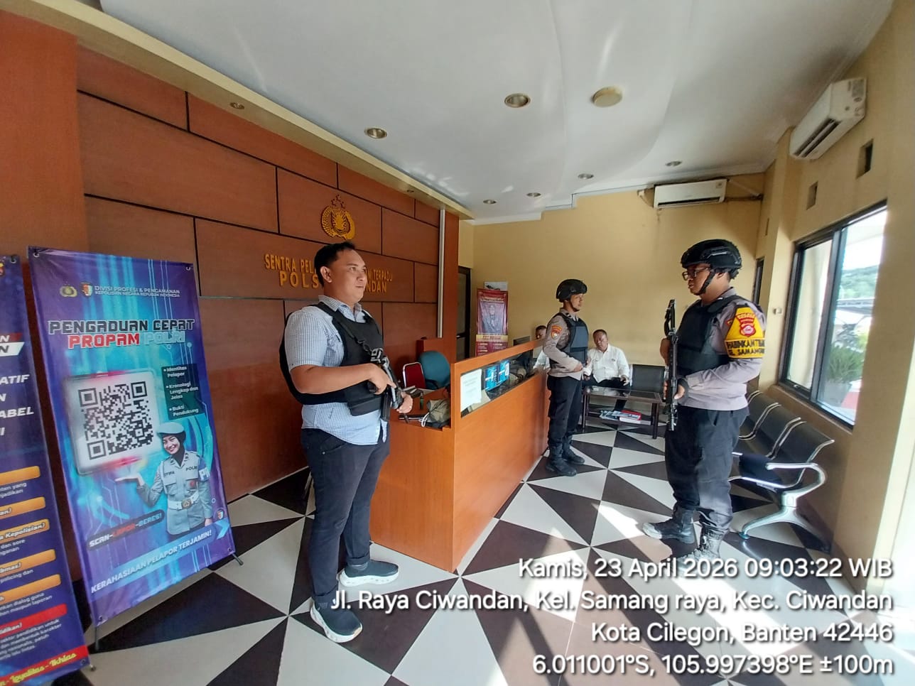 Cilegon - Dalam Kesiap Siagaan dan Memperketat Penjagaan Mako (Markas Komando), Personil Polsek Ciwandan Polres Cilegon Polda Banten melaksanakan Sistem Pengamanan Markas Komando (Sispam Mako), Rabu (22/04/2026).