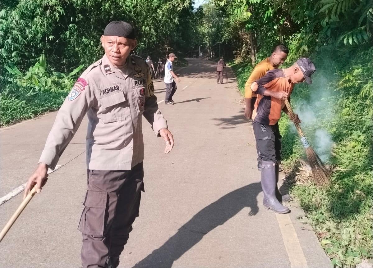 Kapolres Cilegon Polda Banten AKBP Dr. Martua Raja Taripar Laut Silitonga melalui Kapolsek Cinangka AKP Rusnata dan Anggota piket Polsek Cinangka melaksanaan kegiatan Kerja bakti atau Korve di Wilayah Hukum Polsek Cinangka. Kegiatan tersebut dalam rangka pelaksanaan JUKRAH Kapolres Cilegon, tentang pelaksanaan kebersihan mako secara berkelanjutan.
