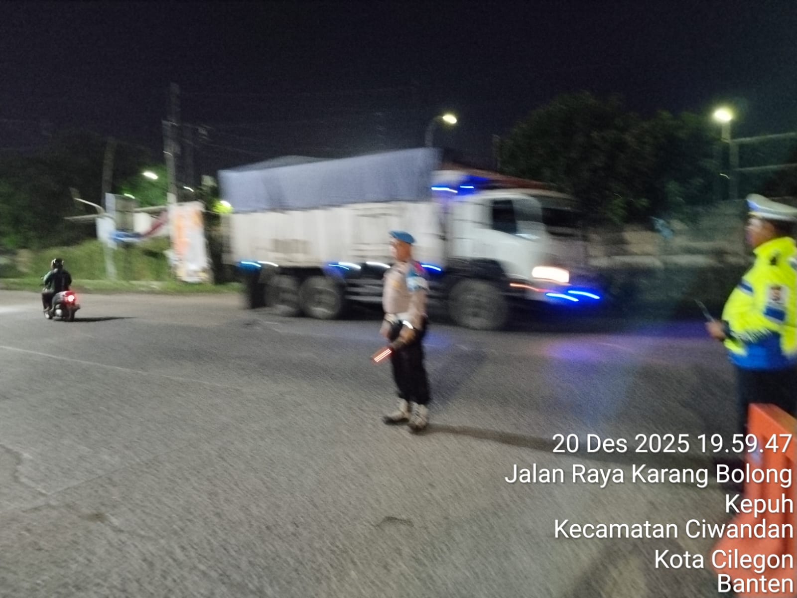Personel Polres Cilegon Laksanakan Pengaturan Lalu Lintas di Jalur Anyar–Cinangka