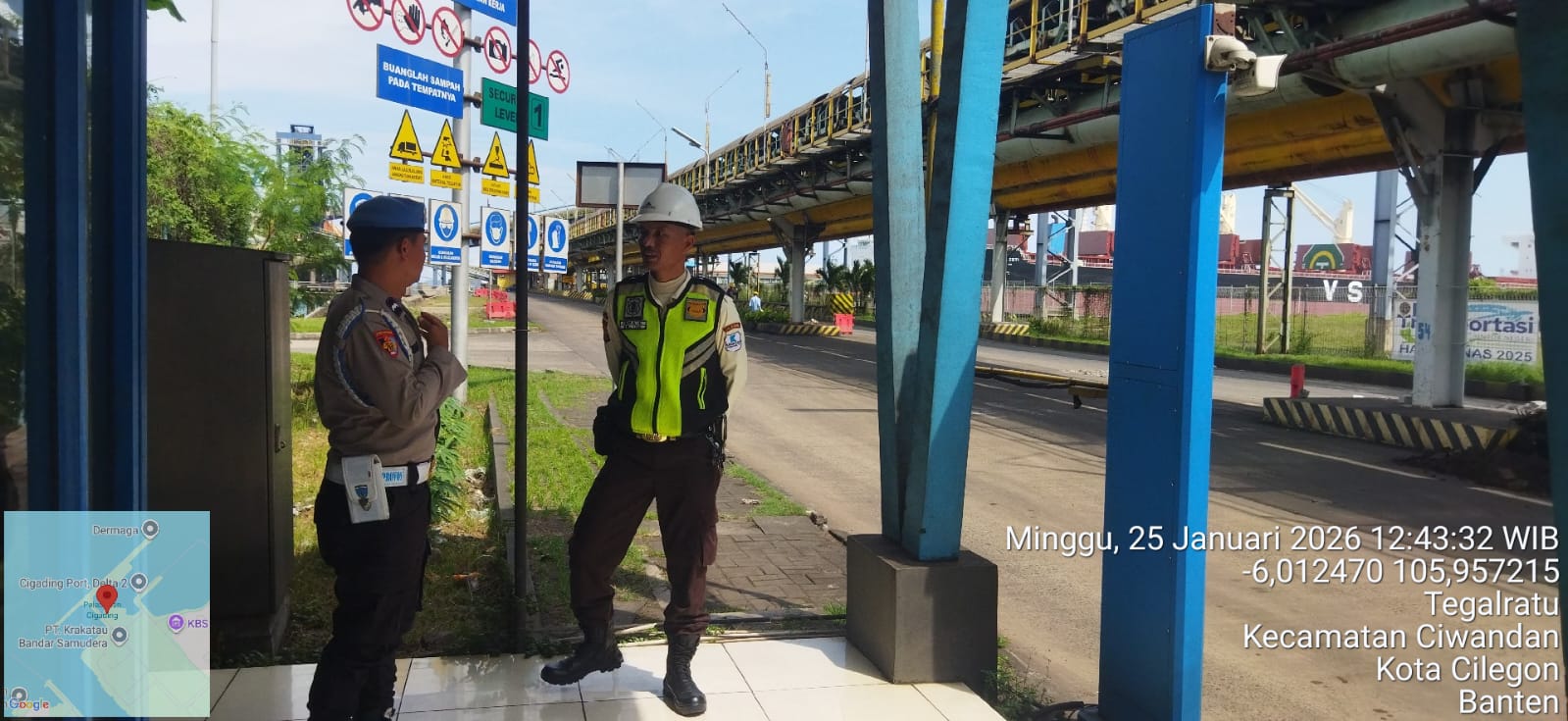 Personil KSKP Banten Polres Cilegon Laksanakan Patroli Dialogis di Kawasan Pelabuhan.