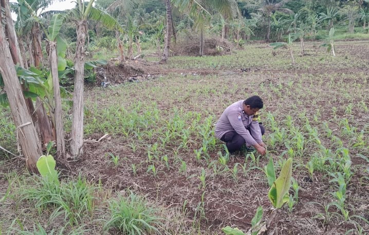 Personil Bhabinkamtibmas Cek Tanaman Jagung, Dukung Program Ketahanan Pangan di kelurahan Tegalbunder