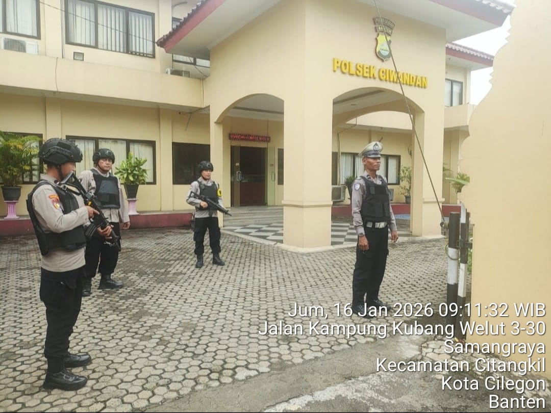 Cilegon - Guna mengantisipasi adanya potensi ancaman dan gangguan terhadap keamanan kantor maupun keselamatan personel piket jaga, Personil Polsek Ciwandan Polres Cilegon Polda Banten selalu tingkatkan kesiapsiagaan dan kewaspadaan dengan rutin menggelar kegiatan Sistem Pengamanan Mako (Sispam Mako), Jum'at (16/01/2026).Kapolres Cilegon Polda Banten AKBP Dr. Martua Raja Taripar Laut Silitonga yang...