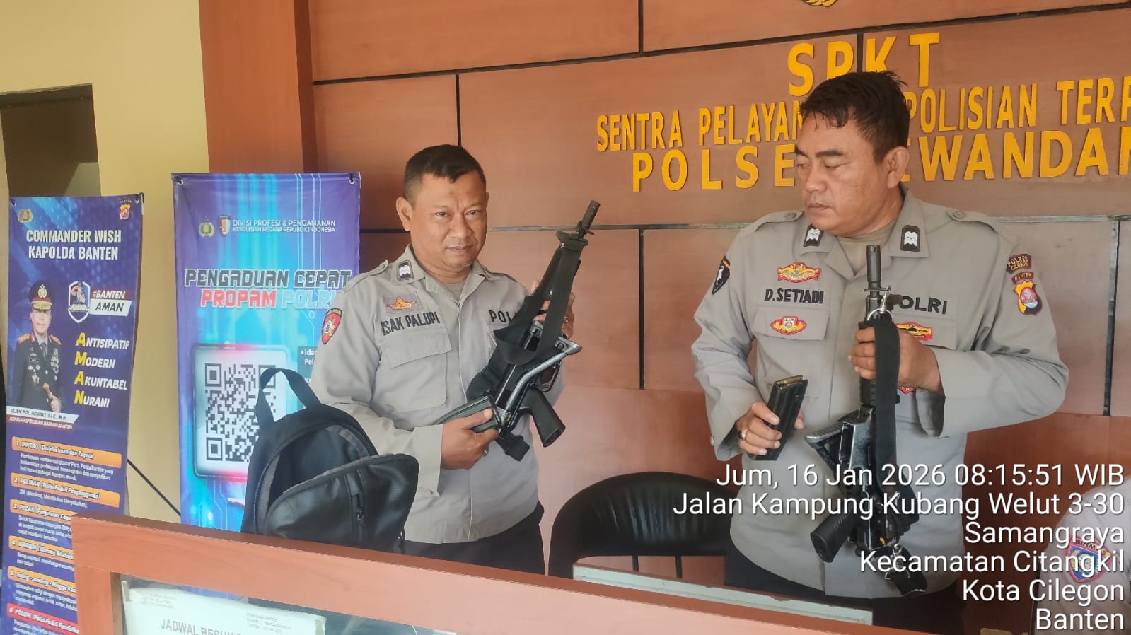 Cilegon - Guna mengantisipasi adanya potensi ancaman dan gangguan terhadap keamanan kantor maupun keselamatan personel piket jaga, Personil Polsek Ciwandan Polres Cilegon Polda Banten selalu tingkatkan kesiapsiagaan dan kewaspadaan dengan rutin menggelar kegiatan Sistem Pengamanan Mako (Sispam Mako), Jum'at (16/01/2026).Kapolres Cilegon Polda Banten AKBP Dr. Martua Raja Taripar Laut Silitonga...