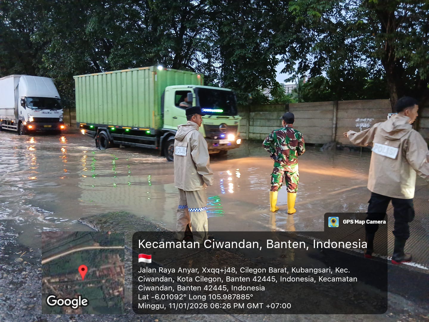 *Cilegon* - Hujan Dengan Intensitas yang Cukup Tinggi Pada hari Minggu tanggal 11 Januari 2026 Personil Polsek Ciwandan Polres Cilegon Polda Banten Melaksanakan Rekayasa Lalu-lintas di titik rawan Genangan Air, Minggu (11/01/2026).Kapolres Cilegon Polda Banten AKBP Dr. Martua Raja Taripar Laut Silitonga Melalui Kapolsek Ciwandan Polres Cilegon Polda Banten KOMPOL...