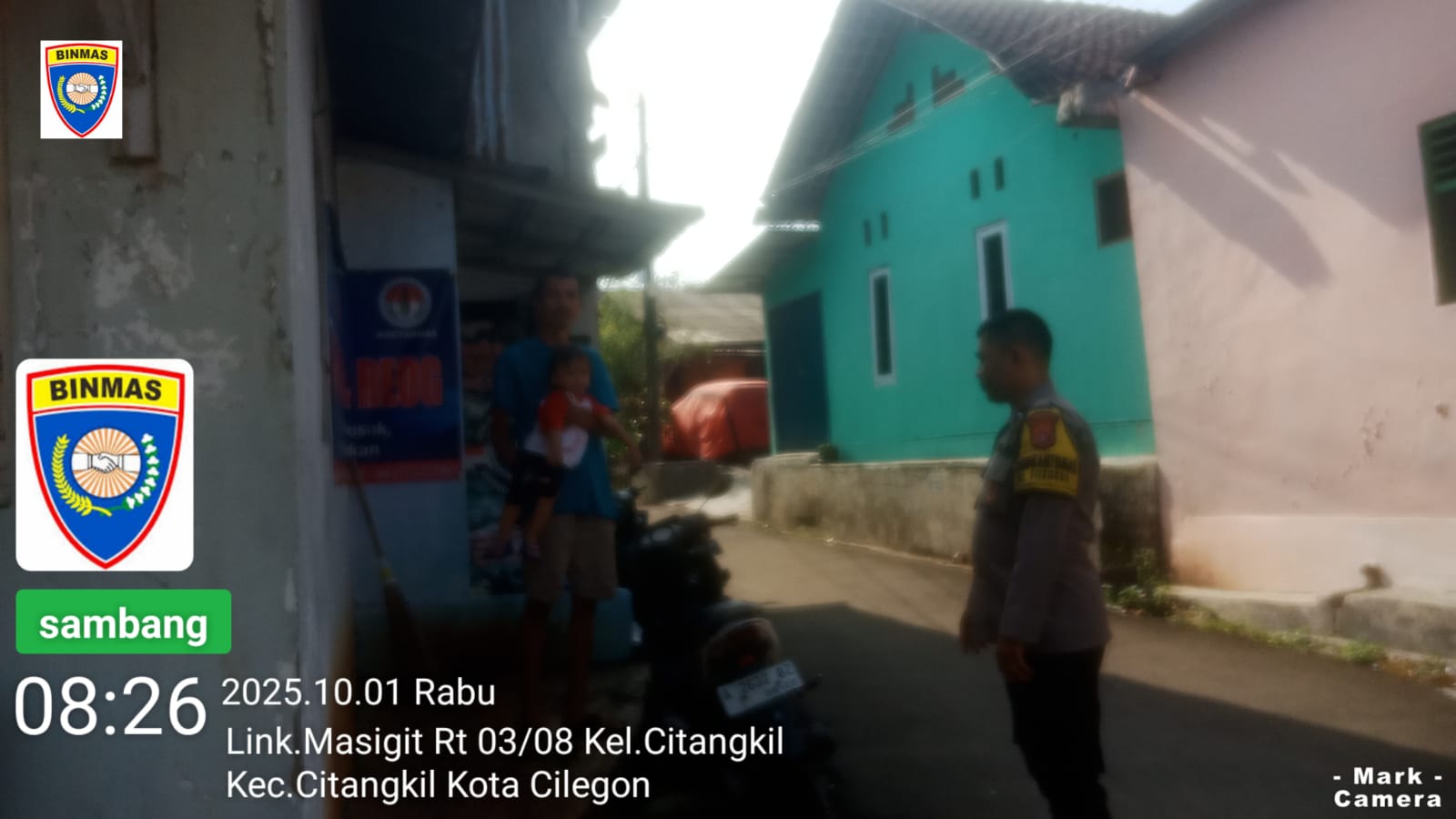 Cilegon - Bhabinkamtibmas Polsek Ciwandan Polres Cilegon Polda Banten  Melaksanakan kegiatan Dialogis/Sambang Door to Door Sistem (DDS) Di daerah binaannya serta memberikan Pesan-pesan Kamtibmas Guna Menciptakan situasi Harkamtibmas yang Aman dan nyaman, Rabu (01/10/2025).