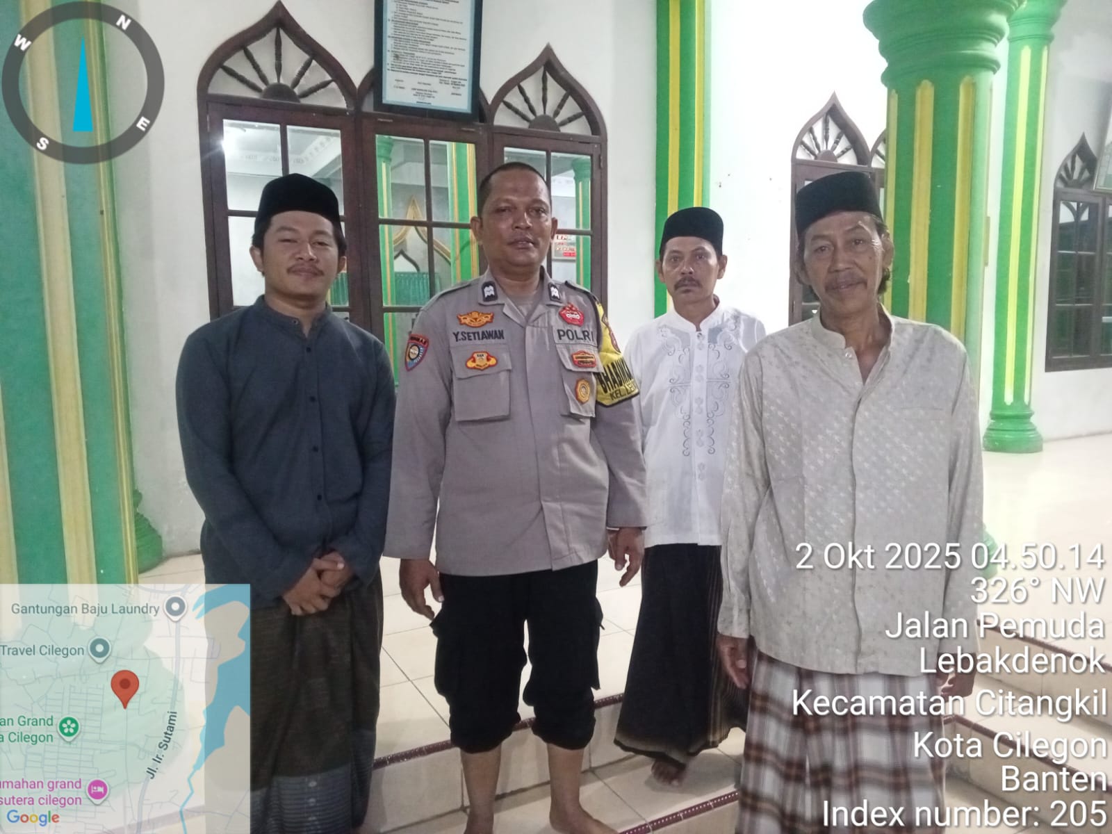 Cilegon - Guna memastikan Harkamtibmas tetap berlangsung aman kondusif,Bhabinkamtibmas Polsek Ciwandan Polres Cilegon Polda Banten menyambangi DKM pengurus Masjid Usai Sholat Berjama’ah,Kamis (02/10/2025).