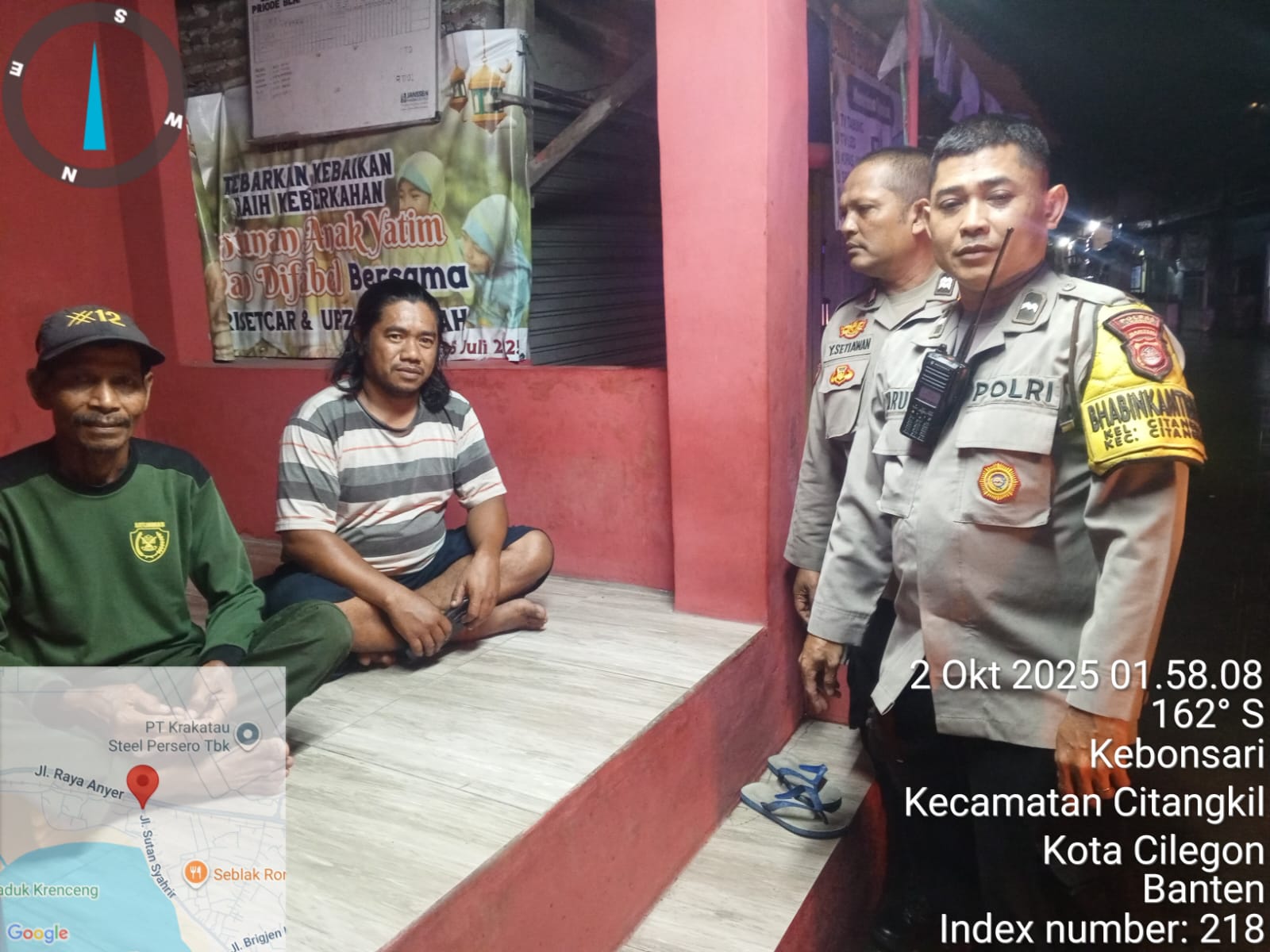 Cilegon - Guna Mencegah Terjadinya Tindak Kejahatan dan Menggiatkan Patroli Pos Ronda Siskamling di Pemukiman warga masyarakat,Personil Polsek Ciwandan Polres Cilegon Polda Banten Mengajak dan memantau pelaksanaan ronda siskamling di lingkungan daerah hukum Polsek Ciwandan, Kamis (02/10/2025).